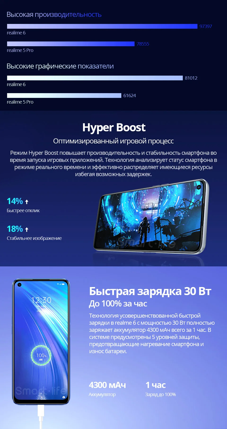 8. Данные об увеличении производительности в режиме Hyper Boost получены в результате тестов лаборатории realme. См. фактический продукт.