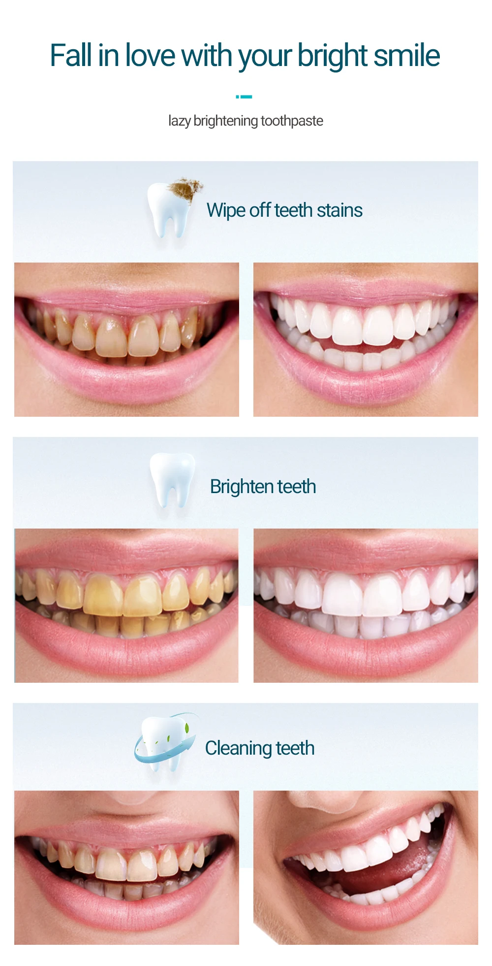 Влюбитесь в вашу Яркую Улыбку Ленивый осветление зубной пасты Удалите пятна зубов Осветления зубов Для чистки зубов