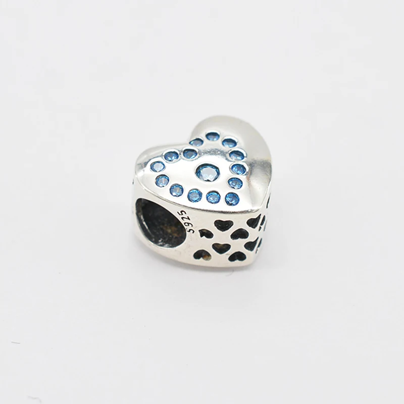 925 стерлингового серебра ослепительный синий CZ Сердце Подвески Бусины Подходят Европейский браслет и браслет для женщин хорошее ювелирное изделие подарок