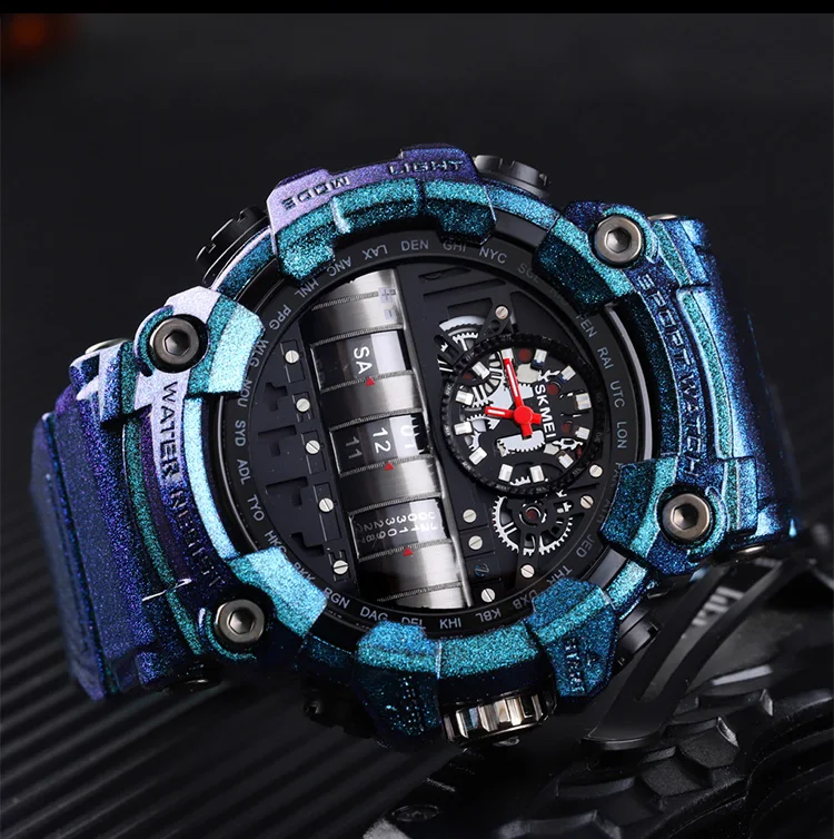SKMEI творчество Мужские кварцевые часы Топ бренд Роскошные мужские часы 2 времени Календарь Водонепроницаемые наручные часы Relogio Masculino 1557