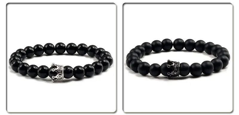 Натуральные браслеты из лавового камня, проложить CZ, Императорская корона, Шарм 8 мм, браслет из бисера для женщин и мужчин, модные ювелирные изделия, мужские Pulseira hombres