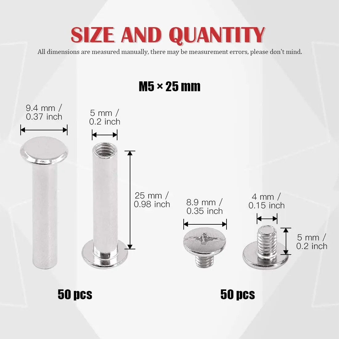 ✅【Качественные материалы these эти chicago винты изготовлены из высококачественной углеродистой стали, однородного покрытия, высокой твердости и красивого внешнего вида, круглые и гладкие, прочные и прочные, чтобы придать хороший блеск. Высокая твердость прочный и не ржавеет, не легко ржавеет в влажной среде, антиоксидант. ✅【COMPLETE models】мы предлагаем phillips chicago screw binding srews posts ассортимент и один конкретный размер, который вам нужен. Достаточное количество и качество, различные технические Характеристики винтов с полной резьбой, не легко прокладывать. ✅【Простая установка 】 деликатно разработанная головка Philip, стандартная шлицевая головка, простая установка с отверткой. Гладкий, без заусенцев, красивый и практичный, поперечное сечение гладкое и без заусенцев ✅【Широкое применение 】различные размеры дают вам широкий спектр приложений для различных рабочих мест, как они приходят. Подходит для некоторых простых проектов «сделай сам» из кожи, всех видов кожевенных изделий, таких как ремень, сумочка, обувь, одежда, кожаный браслет. Подходит для альбомов для скрапбукинга и кожаных сумочек с ремнем ✅[Качественный послепродажный сервис]: если вы не удовлетворены нашими продуктами или любыми вопросами, пожалуйста, обращайтесь к нам в любое время. 24 часа служба быстрого реагирования. Мы обещаем предложить удовлетворительное решение всех ваших проблем. ✅Несколько размеров M5 Chicago винты Ассорти набор шлицевая головка креплений винты Шпильки заклепки для ногтей Chicago кнопка для скрапбукинга фотоальбомы переплет и кожа седла кошельки ремень ✅Набор винтов из углеродистой стали chicago упакован в ящик для хранения, легко носить с собой и хранить их. Хороший материал: Изготовлен из качественного материала из углеродистой стали, покрытого серебристым никелем, прочный и антикоррозийный, легко связывается, устанавливается и снимается, может использоваться повторно, хорошая герметичность. ✅Широкое применение: Деликатный и имеет хороший эффект украшения, особенно подходит для украшения кожаных изделий, переплетения книг, документов, книг, альбомов, поделок своими руками и т. д. ✅Параметры: Цвет: серебро Каждый набор включает в себя 2 части, столб и стержень с поперечной головкой Теплые советы: маленькие детали, пожалуйста, держите подальше от ребенка. ★Посылка включает в себя: 10xbolt 10x Чикаго Винты