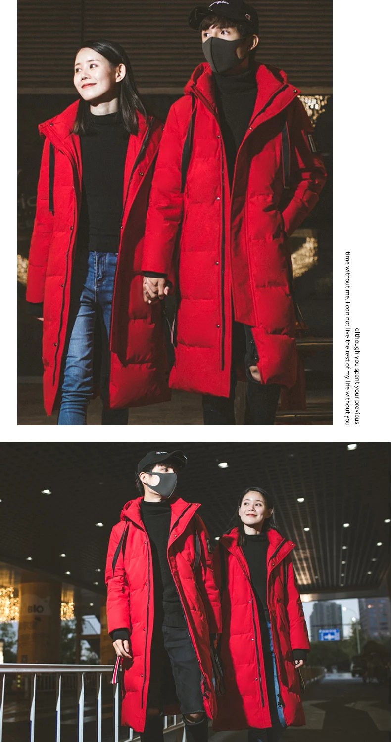 Мужской длинный пуховик на белом утином пуху с меховым воротником и капюшоном
