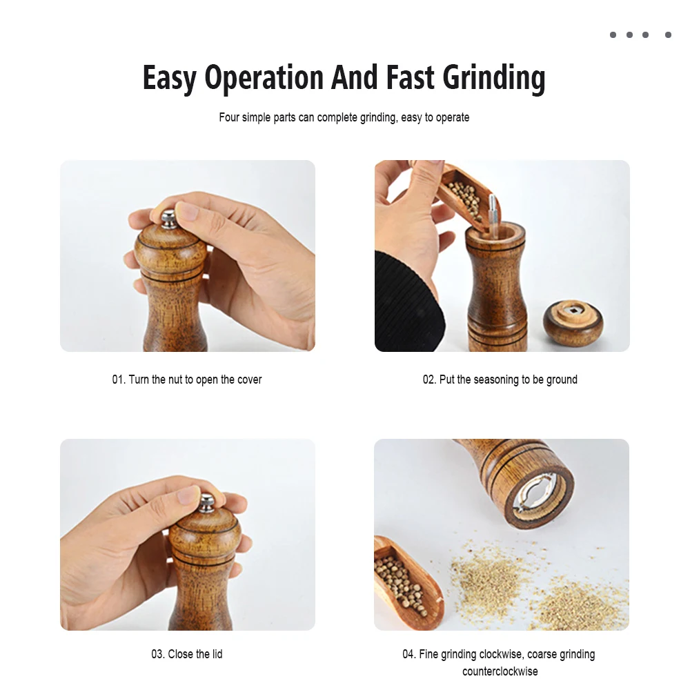 1. Материал дуба: Изготовлен из дуба, шлифовальный станок отличается удобным прикосновением, прочной текстурой и прочностью. Не легко впитывает воду, устойчив к коррозии и обладает высокой прочностью. Миниатюрный Обтекаемый корпус в классическом стиле. 2. Широкие характеристики: изготовлен из высокопрочного керамического шлифовального сердечника, шлифовальный станок отличается высокой твердостью, износостойкостью, коррозионной стойкостью и защитой окружающей среды. Легко моется и не поры. 3. Регулируемая толщина: его можно регулировать вручную. Винтовая крышка из нержавеющей стали может регулировать толщину перца. Затягивается хорошо, ослабляется толстым (не скручивается слишком плотно, чтобы не повредить ядро). 4. Метод очистки: Поместите рис в мясорубку и измельчите его. Остатки керамического шлифовального сердечника могут быть очищены вдоль рисовой мельницы. (Примечание: Если вы хотите Измельчить другие приправы после измельчения перца, вы можете использовать этот метод для его очистки, чтобы он был более гладким и мог избежать запаха.) 5. Подходящие случаи: он очень подходит для дома, отеля, западного ресторана и других случаев. Это также хороший выбор в качестве подарка. Его можно использовать как контейнер для приправы.
