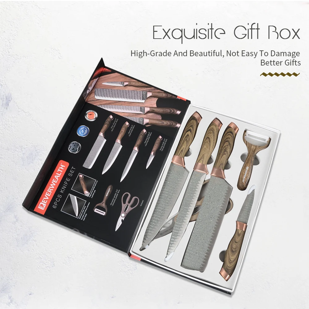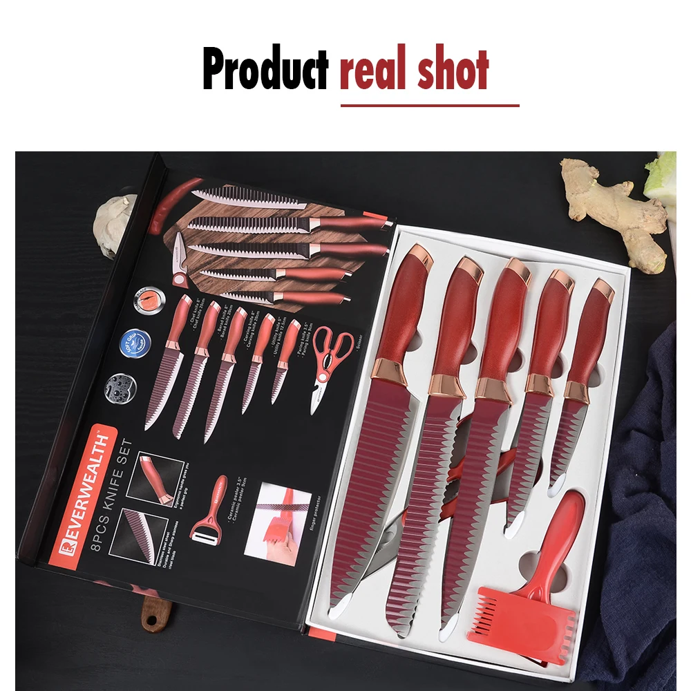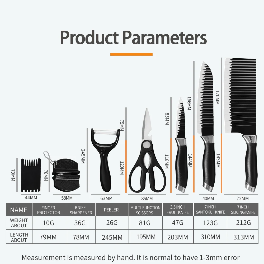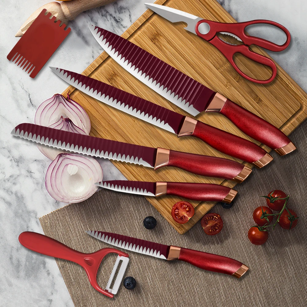 Sowoll 7 шт. ножи из нержавеющей стали, набор ножниц, нож для овощей и фруктов, кухонные ножи, Подарочная коробка, разделочный нож, красный, черный