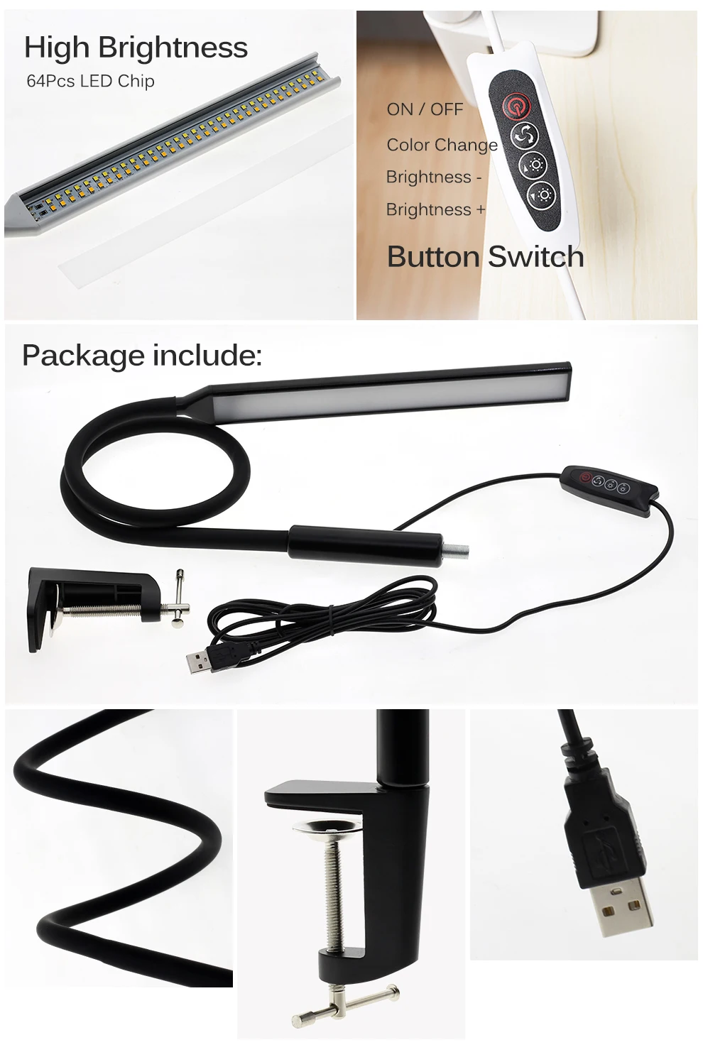 10 Вт светодиодный зажим с длинной ручкой, настольный светильник, гибкая лампа для защиты глаз, для спальни, светодиодный свет, 3 уровня яркости и 3 цвета