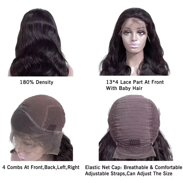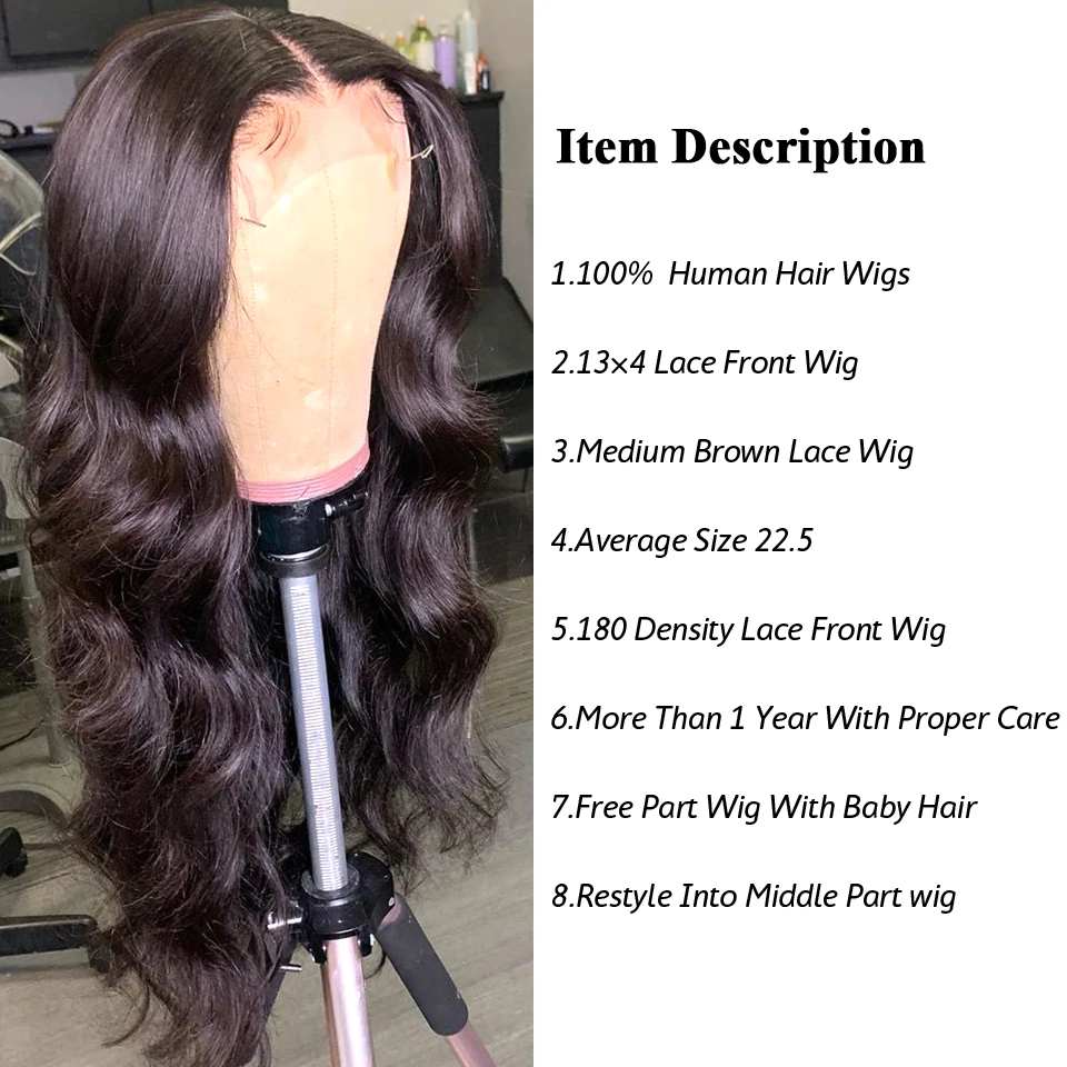 13X4 бесклеевая кружевная передняя часть, парики из человеческих волос, предварительно выщипанные волнистые кружевные передние парики Remy, 180 плотность, кружевные передние парики, бразильские волосы, парики