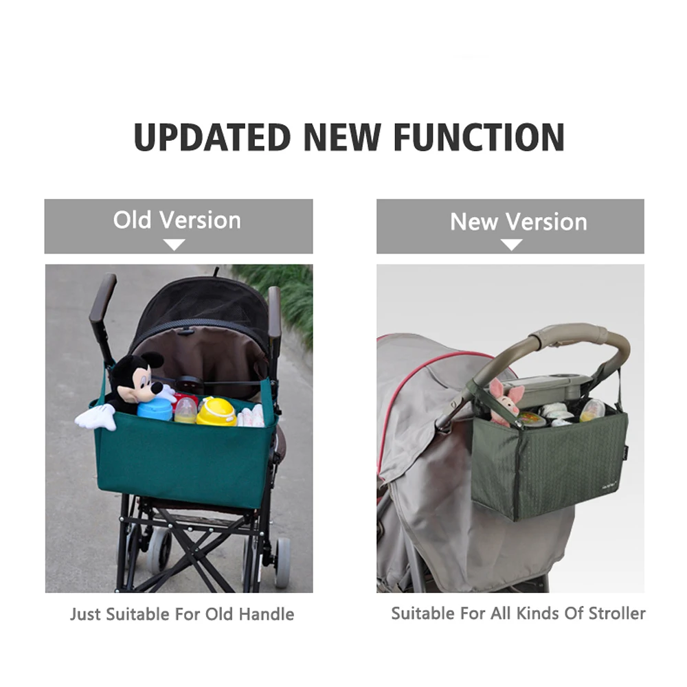 This is a very convenient and practical stroller organizer. It will greatly free mother's hands. With big space, it can organize toys, milk bottle, phone, snacks, diaper, keys etc. Besides, it is water-resistant, easy to wipe and foldable. Owning such a stroller organizer will do much help to you, why not come and get one?