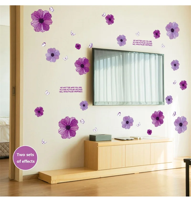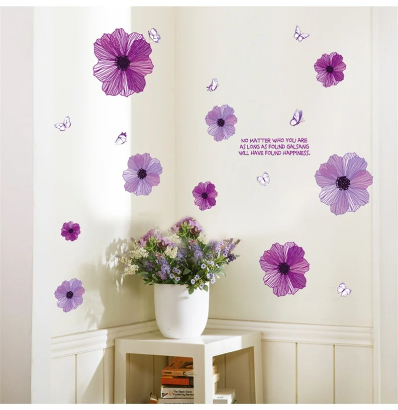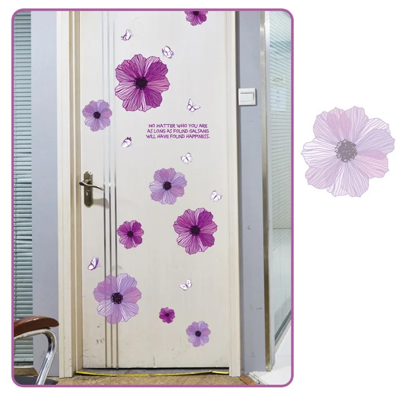 DIY фиолетовые цветы наклейки на стену съемные фиолетовые наклейки ТВ диван ванная комната Домашний декор настенная виниловая Дверь Кухня обои для Кабинета