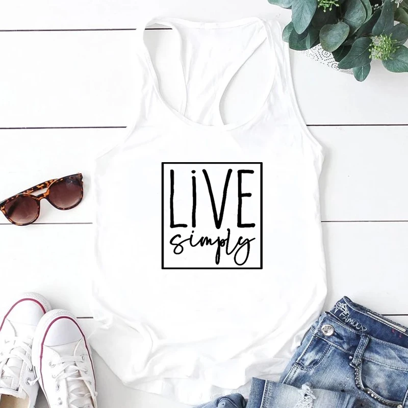 Женская майка с открытыми плечами Live Simply Christian, белая повседневная одежда для фитнеса, для тренировок, Tumblr