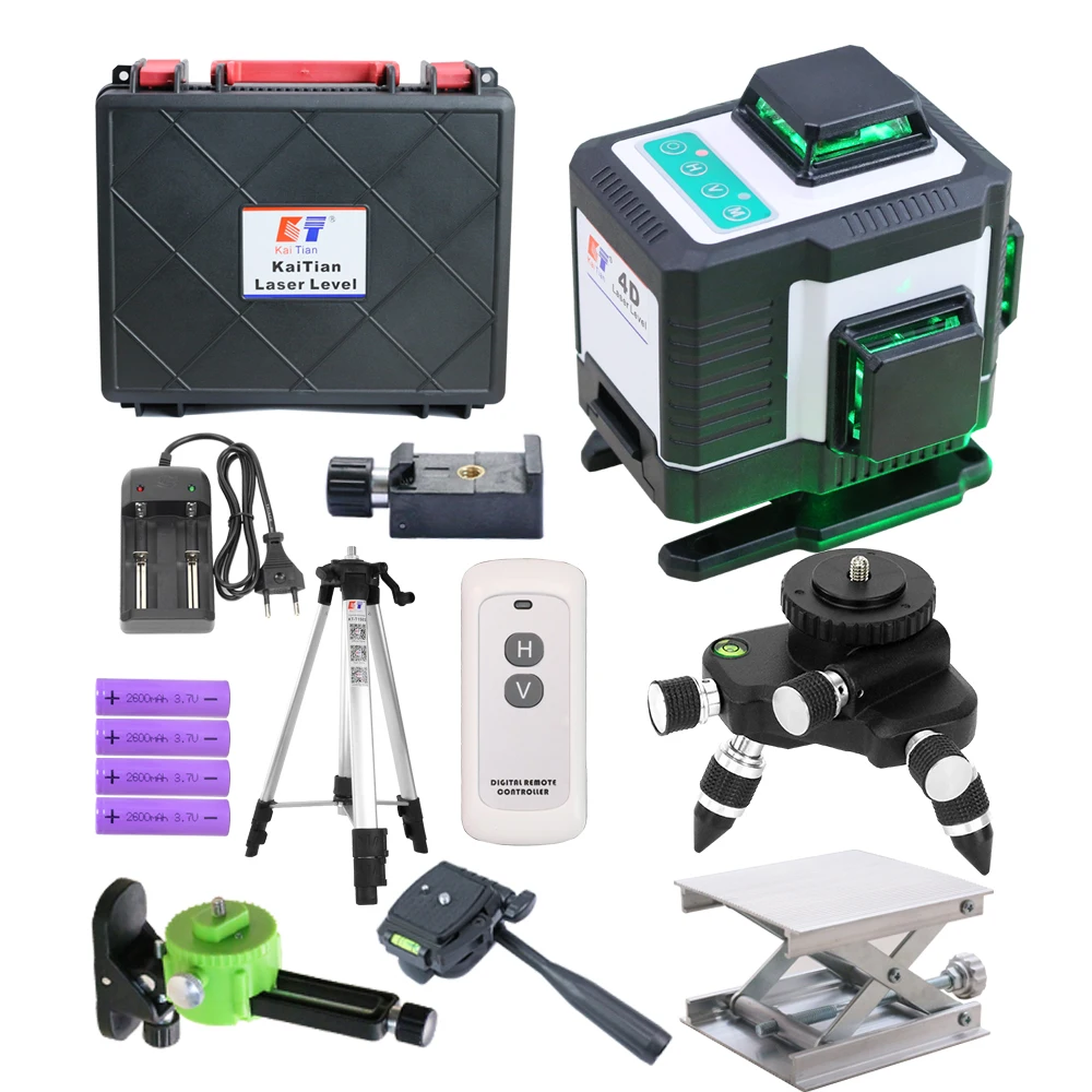 Kaitian 16 линий 4D лазерный уровень, электронный автоматический 360 горизонтальный и вертикальный крест супер мощный зеленый лазерный уровень штатив