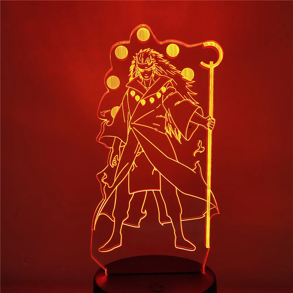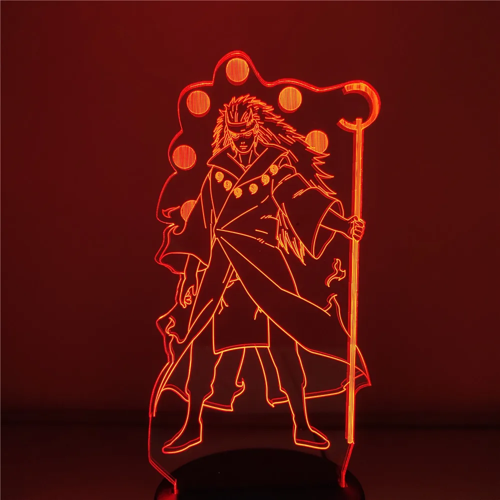 Naruto Uchiha Madara 3D LED Night Lights Rikudo Sennin Version Kids Bedroom Bedside Decoration Lampara Creative Lamp Home Lampe yh
