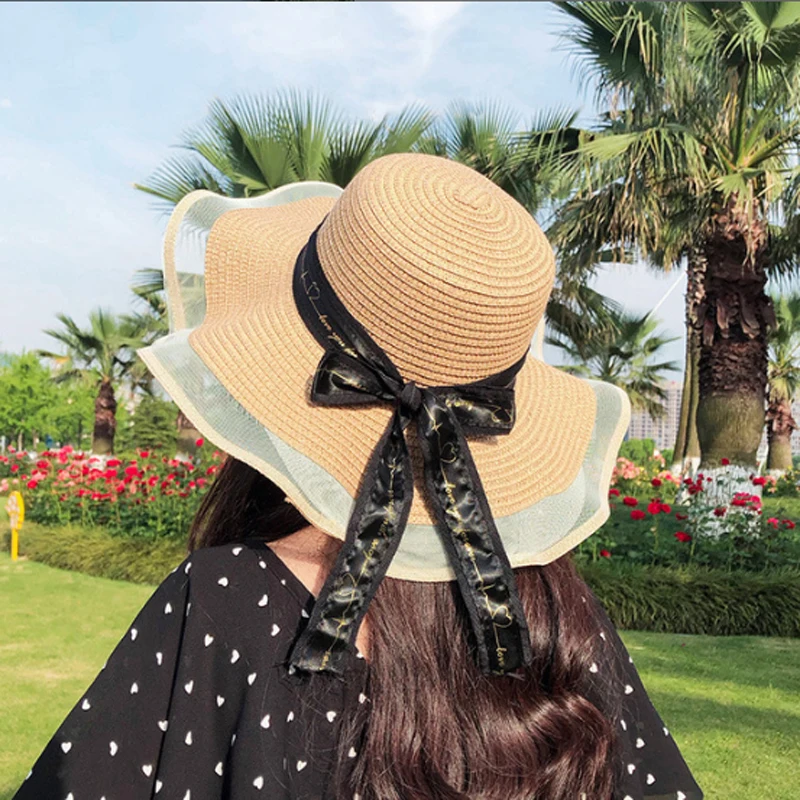 Шляпа женская Соломенная с плоскими полями Панама Пляжная шапка в стиле кэжуал
