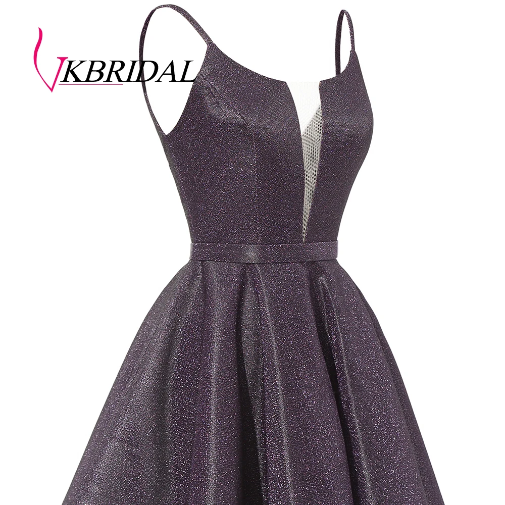 Vkbridal платье с v-образным вырезом для выпускного вечера 2020 новое красивое блестящее платье для выпускного вечера Короткие трапециевидные вечерние платья с карманом