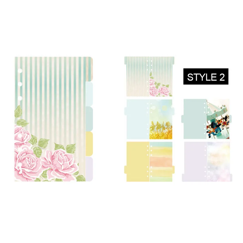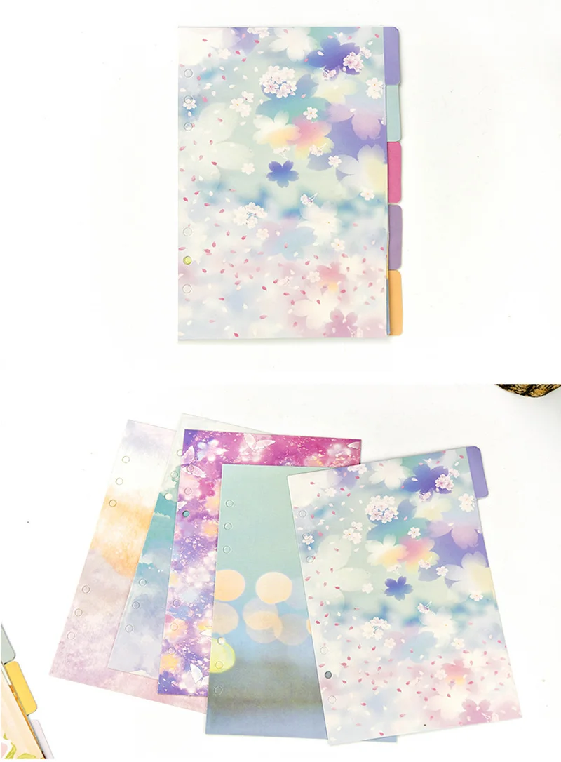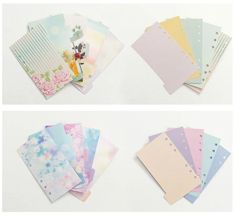 A5 A6 цвет 6 отверстий индекс бумаги делитель для связующего Размер: A5 140*210 мм A6 97*170 мм Материал: мелованная бумага 250 г Количество: 5 листов в каждой упаковке