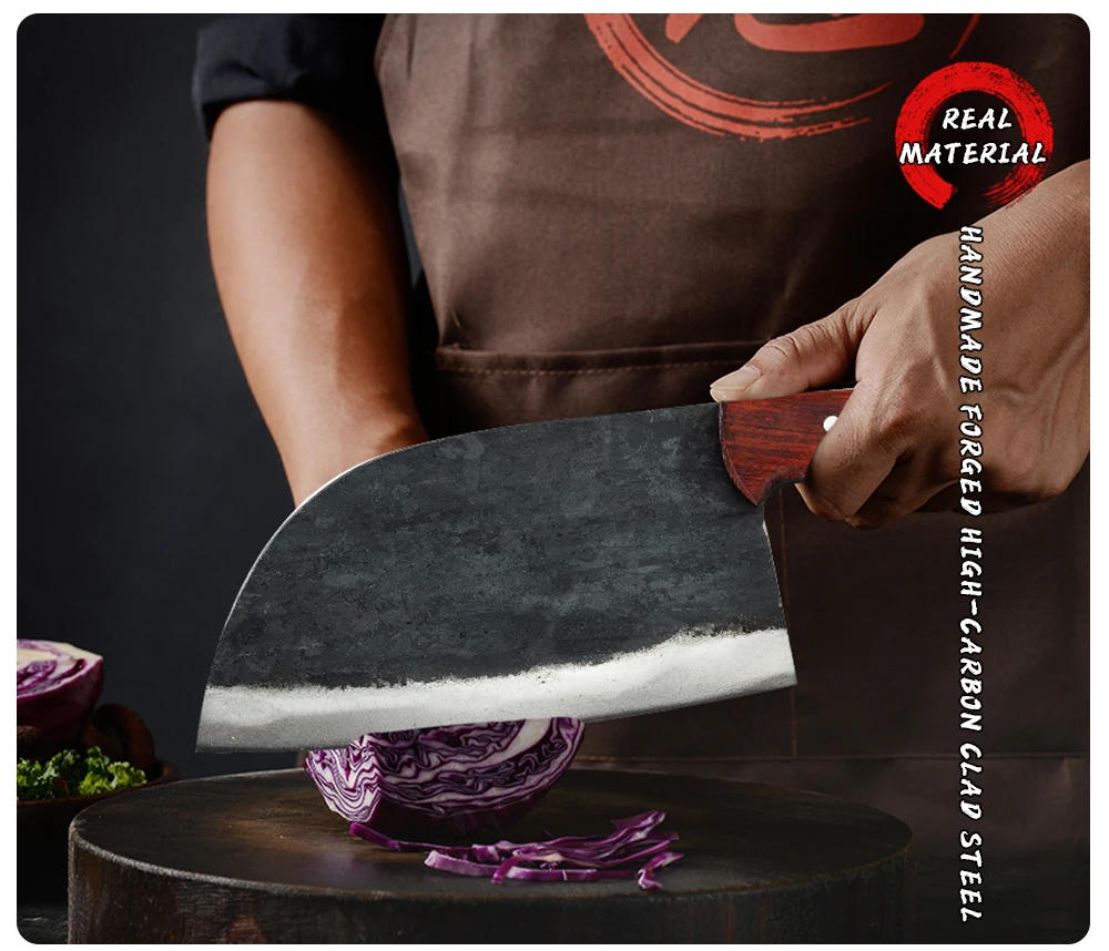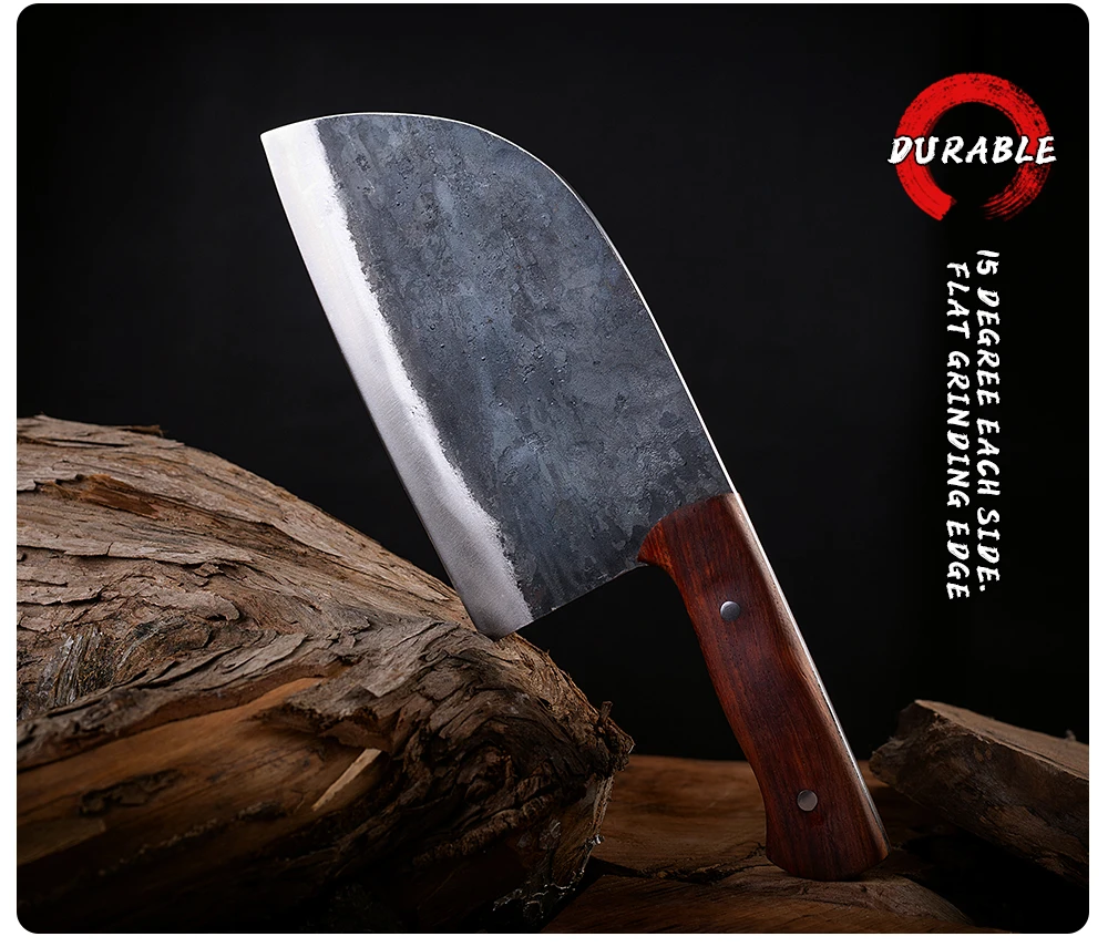 Характеристики:Материал лезвия:Кованая Высокоуглеродистая сталь ручной работыМатериал ручки:Деревянная + заклепкаВес нетто: 335 гДлина: 289 ммДлина лезвия: 175 ммШирина лезвия: 97 ммТолщина: 3,5 ммХарактеристики: острый и прочный светильник, удобный захват.Фиксация:Фрукты, варенье, мясо, овощиПосылка входит:1*6,9 дюймаКованый нож-Кливер1 *Холщовый чехол