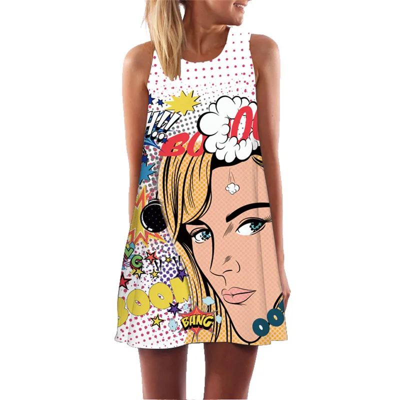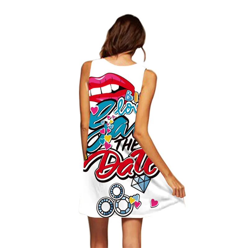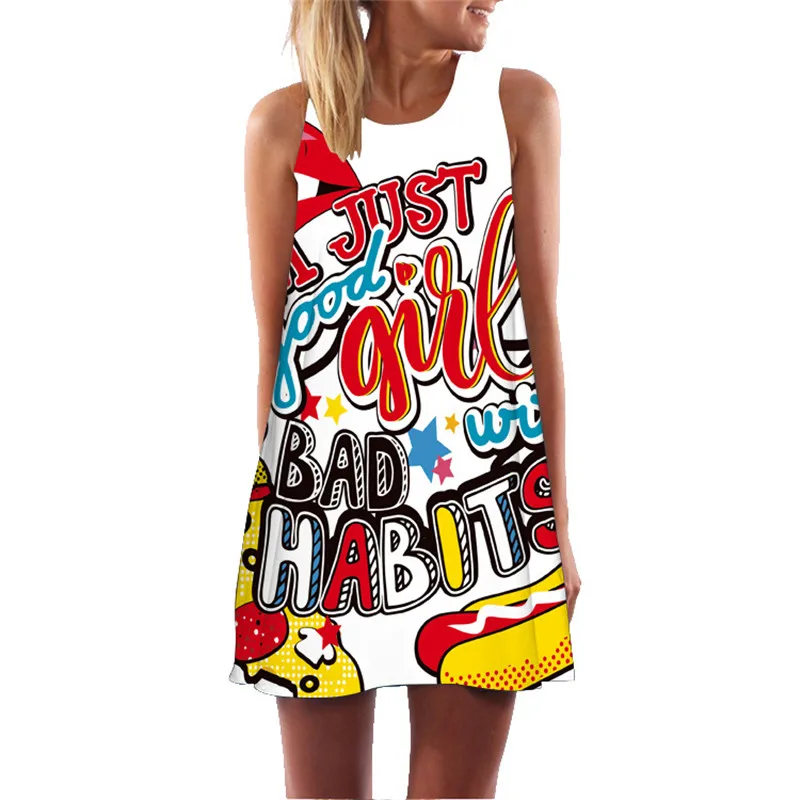 Женское летнее платье 2020, Туника без рукавов, сексуальное короткое мини-платье с 3D буквенным принтом, винтажное свободное шифоновое пляжное вечернее платье в стиле бохо