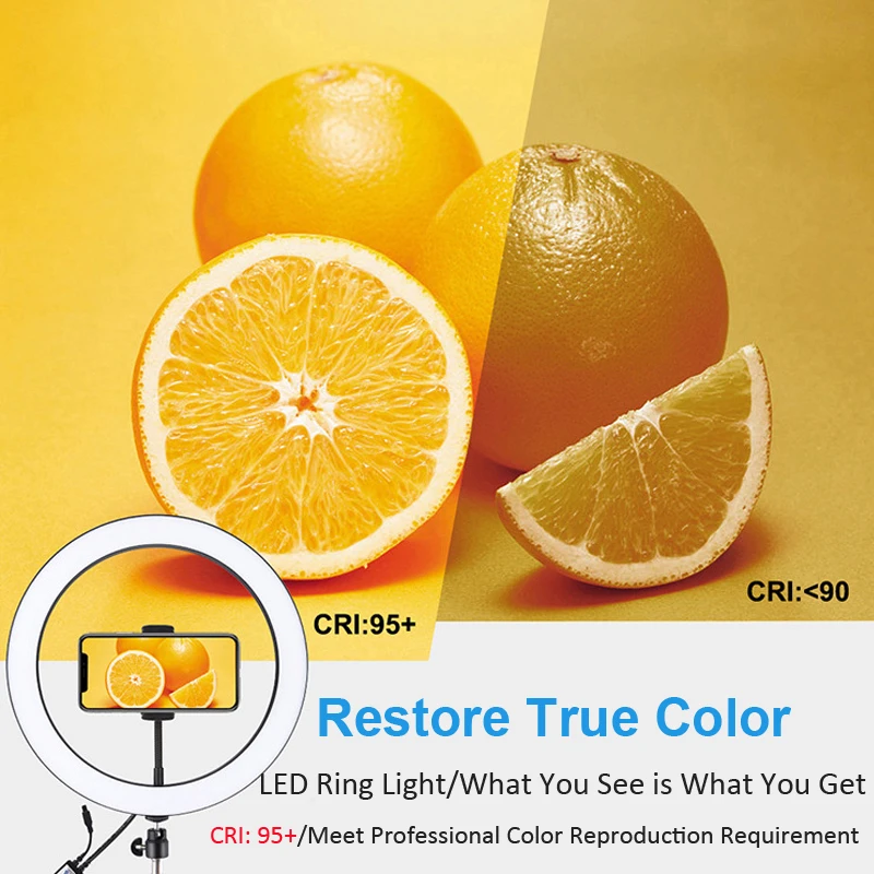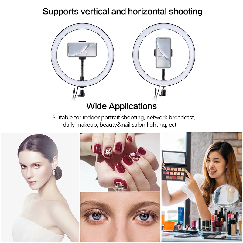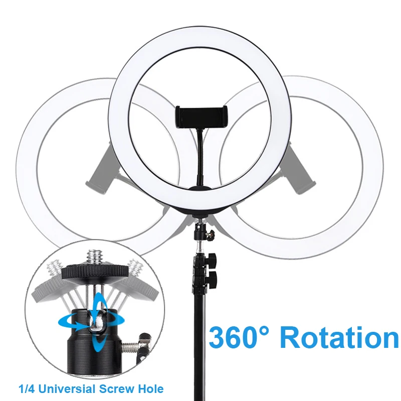 Особенности: 1. Светодиодный кольцевой светильник можно установить на держатель и взять его в любом месте, его также можно снять с стойки в любое время, шаровая Головка штатива может вращаться на 360 градусов, можно свободно регулировать под любым углом 2. Кольцевой Светильник изготовлен из 75 шт энергосберегающий светодиодный бусины, рассеивания тепла отличное постоянное потребление тока и высокий индекс цветопередачи, смягчить светильник источник и улучшить кожу тон в портреты фотографии. 4. Режим цветового освещения RGB Регулируемая яркость на ваш выбор, вы можете настроить цвет и яркость очень легко, идеальная яркость может быть достигнута без установки дополнительных красочных фильтров. Мягкий естественный светильник разных цветов освещает вашу красоту в разных случаях. 5. Широкое Применение: Широко применяется при естественном освещении под обстановку вне светильник, светильник портретной съемке, на модных показах, рекламная фотосъемка, съемка видео и т. д. 6. Легкий и портативный дизайн: удобно использовать и носить с собой во время путешествий или работы на открытом воздухе и т. Д. 7. Функция рассеивания тепла: металлический корпус, даже если он используется в течение длительного времени, нет необходимости беспокоиться, что лампа будет горячей. 8. Зажим для телефона подходит для мобильного телефона шириной 5,7-9 см. 9. С новейшим Bluetooth 4,0 беспроводным умным светодиодным полноцветным RGBW заполняющим светом, для различных сцен заполняющим светом, через Android 4,0 и выше, iOS iPhone 4S выше Система смарт-устройств для управления выключением/вкл заполняющего света, регулировка цвета и яркости света Кольцо светодиодный Технические характеристики 1. Светодиодный Бисер: 75 шт. SMD 5050 RGBW 2. Мощность: 30 Вт 3. Светильник: RGB + белый 4. Режимы управления: приложение Bluetooth, дистанционное управление 5. Режимы дистанционного управления: 20 статических цветов и 6 динамических цветов 6. Режимы функции приложения: режим регулировки цвета, Режим музыки, режим голосового управления, режим переключения времени 7. Удаленное расстояние: 5-10 м Штатив: 1,1 м