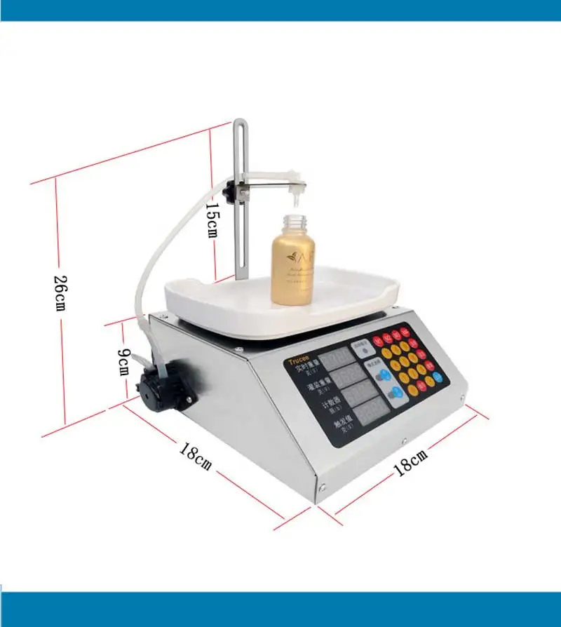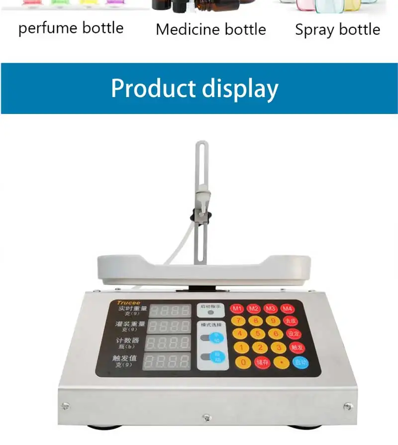 Параметр Напряжение: 110-220 В переменного тока Мощность: 15 Вт Диапазон наполнения: 0-50 мл Максимальный расход: 90 мл/мин. Посылка: 18x18x12cm Вес: 6,5 кг Подходящая высота бутылки: 0-15 см (регулируемая) Доступно средство для защиты от капель Функция памяти недоступна Применение Эта машина подходит для заполнения пероральной жидкости, зелья, парфюма, эфирного масла, образца продукта и т. Д.