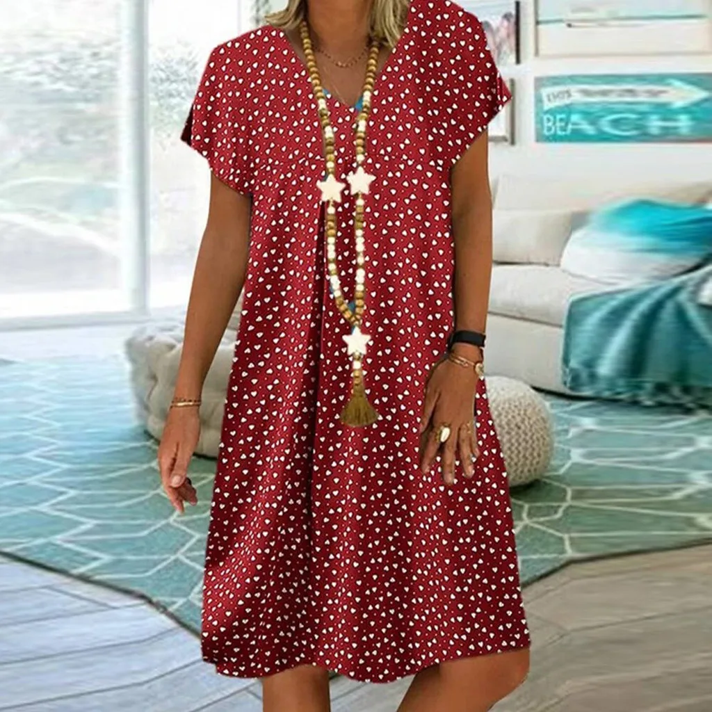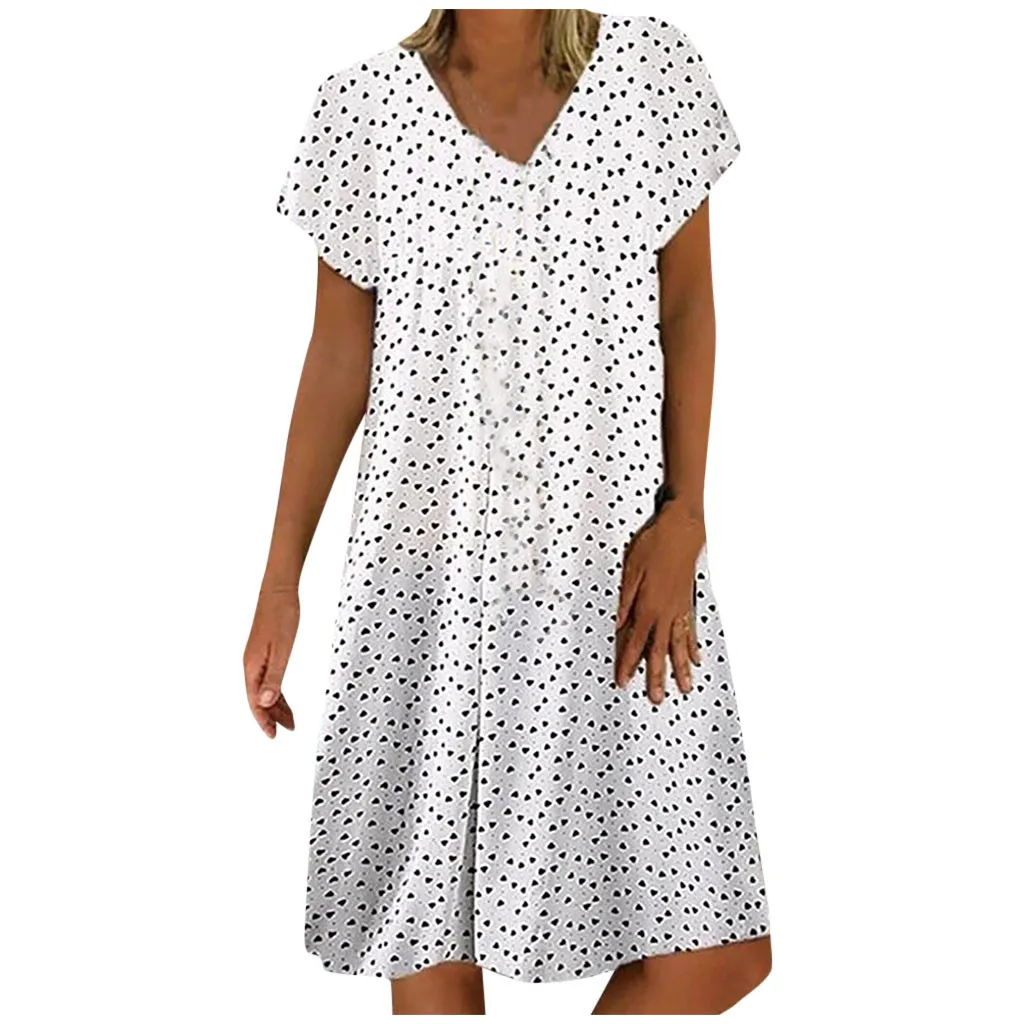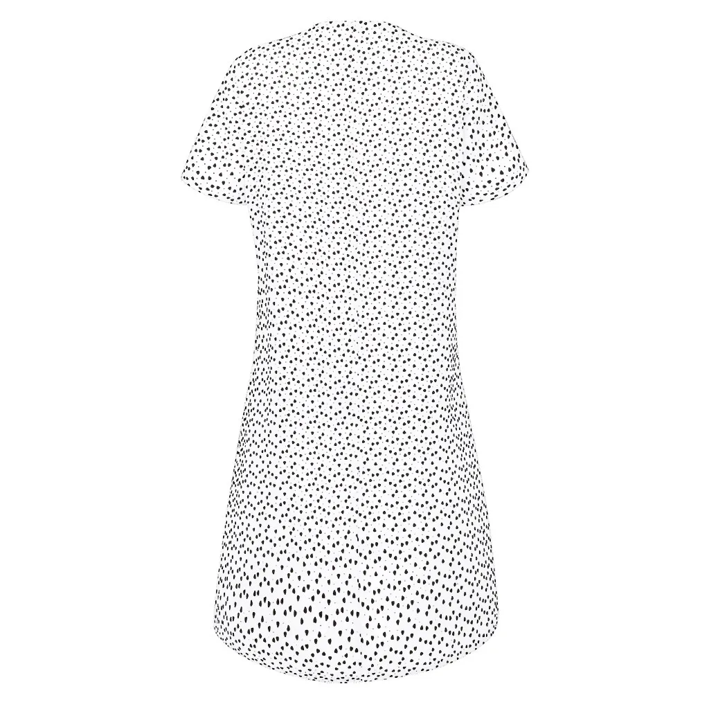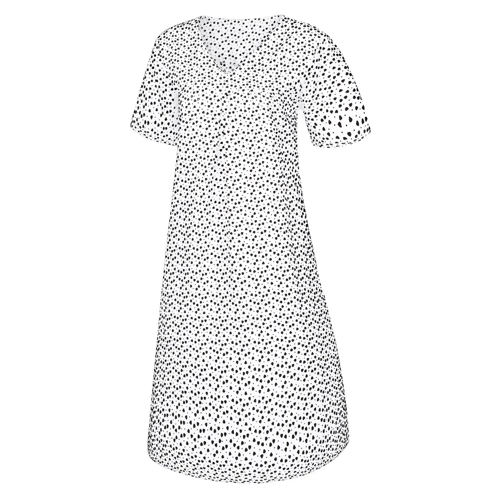 Модное женское повседневное свободное платье с короткими рукавами и круглым вырезом в горошек размера плюс