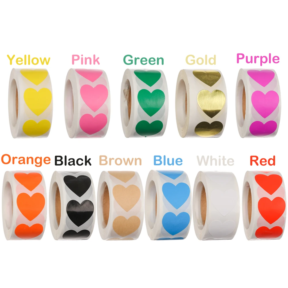 1 дюйм сердце | 500 наклейки на сердце в рулоне