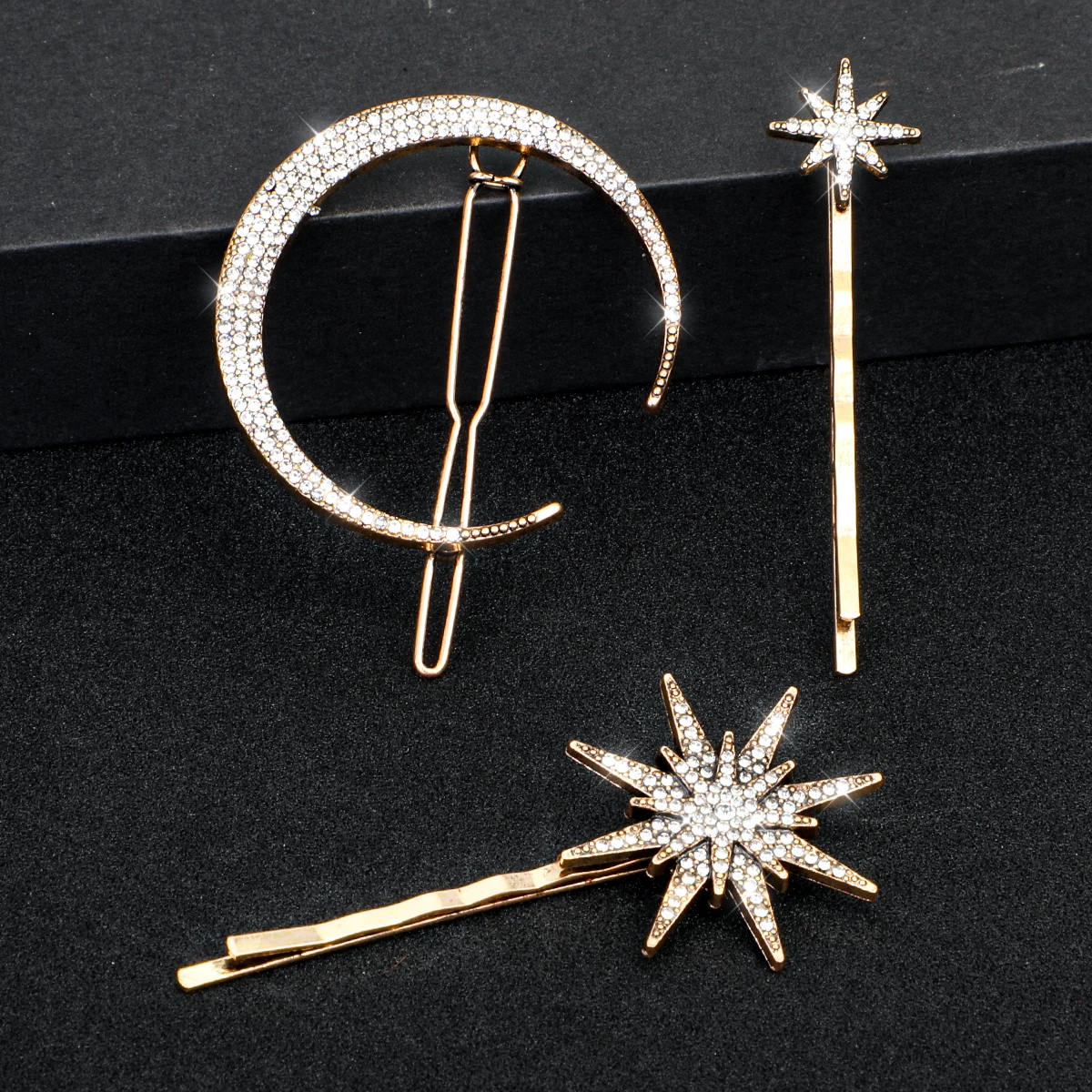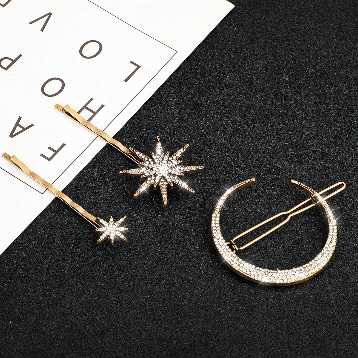 1/2 Sets Star Moon Rhinestone Hair Clip Hairpin Women Girls Jewelry Fashion Styling Accessories Beautiful Hair Match Tool