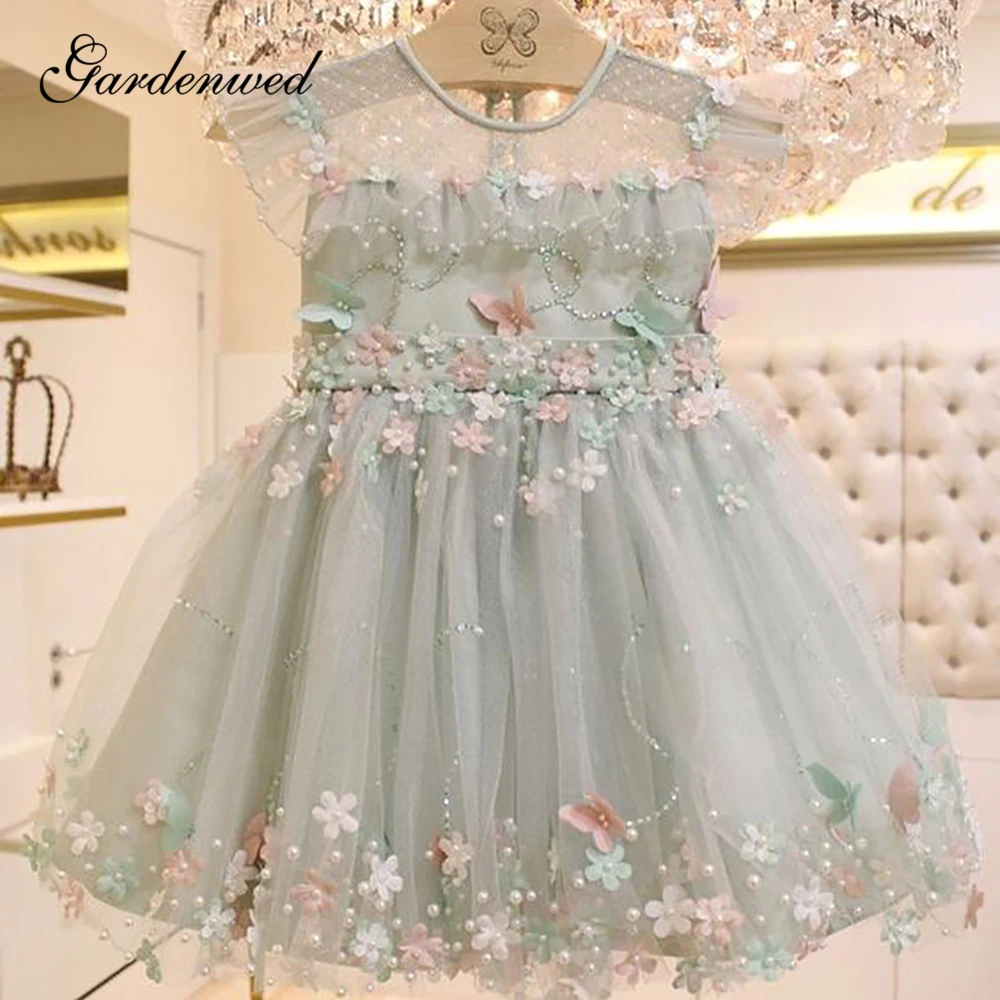 Платья для девочек с длинными рукавами и цветами свадьбы B026 платья принцессы