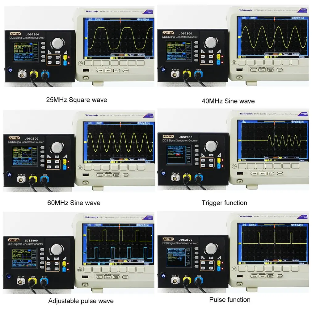 1. Двухканальный генератор сигналов серии DS2800 сочетает в себе несколько функций в одном, таких как генератор функциональных сигналов, генератор произвольной формы, импульсный генератор, развертка, счетчик и счетчик частоты и т. д.