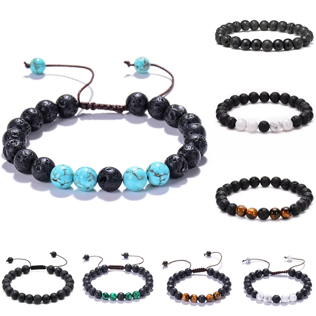 Унисекс браслеты с бусинами из натурального камня ручной работы Плетение Черный Браслет-веревочка Регулируемый Лава камень эфирные масла диффузор браслетUS $2,60