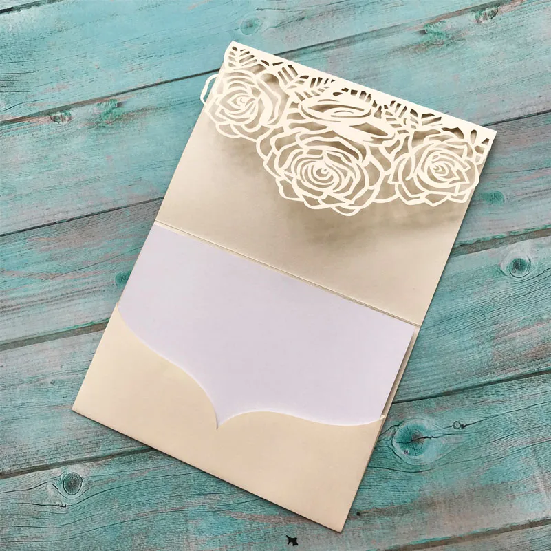 50 шт. Свадебные Приглашения Элегантный розовый узор лазерная резка настроить пригласительные карты три-складки карман приглашает