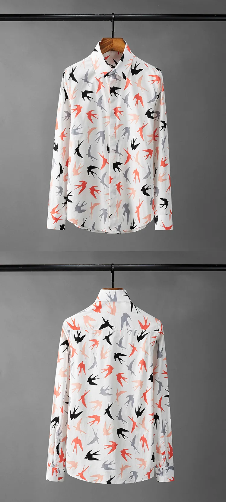 Название: Повседневная тонкая мужская рубашка 2020 с длинным рукавом с принтом Chemise homme, брендовые качественные рубашки из 100% чистого хлопка для мужчин размера плюс M-4XL