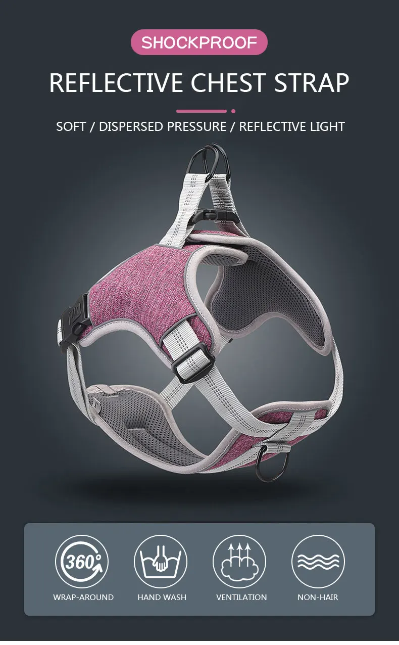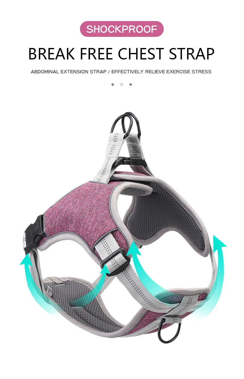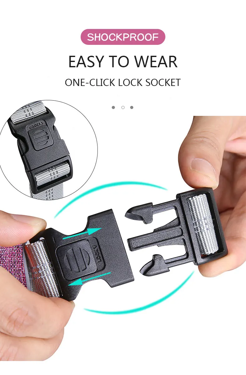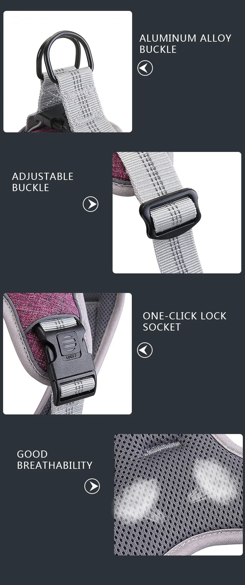 3.2 быстросъемные пряжки для погрузки и разгрузки. Проведите поводок над головой собаки, пристегните поводок, отрегулируйте поводок и вуаля! Не беспокойтесь о том, что Вы застреваете в волосах вашей собаки, они легкие и легко чистятся.