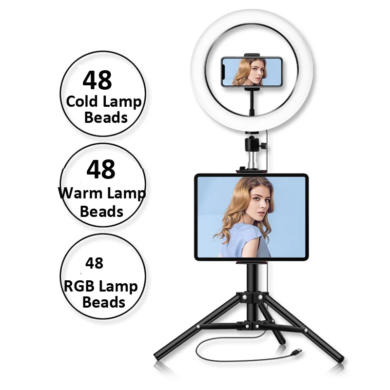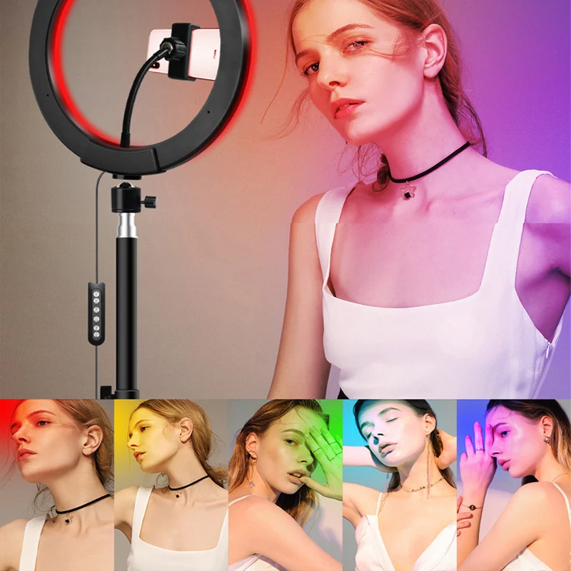 RGB светодиодный кольцевой светильник, штатив для селфи, светодиодный светильник для фотосъемки с держателем для телефона, планшета, usb-разъем для студии, YouTube