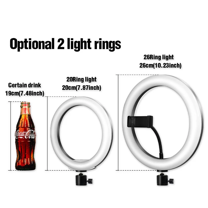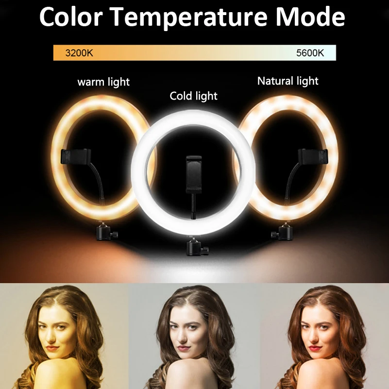 Название продукта: Тип 1: светодиодный кольцевой светильник RGB 26 см Наружный диаметр кольцевой лампы: 26 см10 дюймов Ламповые бусины: 48 лампа с холодным светом, 48 теплых ламповых бусин, 48 RGB ламповых бусин Цветовая температура: 2700K-6500K plus RGB Люмен: 1200 Вт Мощность: 10 Вт Напряжение: 5 В Интерфейс: 4/1 Светильник Материал корпуса кольца: поликарбонат Длина кабеля USB: 2 метра Регулировка яркости: Да Тип 2: светодиодный кольцевой светильник RGB 20 см Наружный диаметр кольцевой лампы: 20 см 8 дюймов Напряжение: 5 В Интерфейс: 4/1 Светильник Материал корпуса кольца: поликарбонат Длина кабеля USB: 2 метра Регулировка яркости: Да Цветовая температура: 2700K-6500K plus RGB Тип 3:26 см светодиодный кольцевой светильник, без штатива, без RGB Тип 4:16 см светодиодный кольцевой светильник, без штатива, без RGB Примечание: Есть много вариантов на выбор, некоторые с штативом, некоторые нет, пожалуйста, внимательно проверьте перед покупкой.