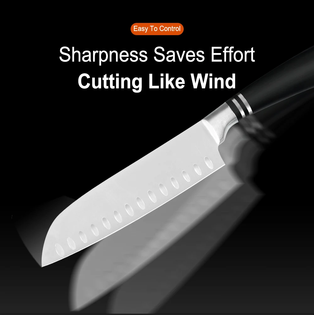 XYj stainless steel kitchen knife set is made by high quality stainless steel, good for chopping meat bones, non rusting, hardness and durable. And the knife handle is stainless steel with ABS, ergonomic design, non-stick, light weight, comfortable and labor-saving, easily cutting, longer service life span.