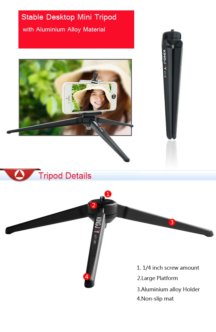 Описание: Предназначен для макросъемки. Светильник имеет вес и высокую стабильность. Винт для камеры 1/4 дюйма совместим со всеми камерами. Он может поддерживать селфи-палку для съемки селфи. Особенности: 1. Стандартный винт UNC1/4 дюйма Стандартный винт UNC1/4 дюйма может быть непосредственно установлен на камеру. Это универсальный размер, тогда он совместим со всеми цифровыми камерами. 2. С корпусом штатива из алюминиевого сплава Корпус штатива изготовлен из высокопрочного встряхнутого алюминиевого сплава, обработанного по технологии нанесения лака с высокой температурой, стойкостью к коррозии. Это удобный для ношения. 3. Резиновый коврик Мы добавили резиновую прокладку на стопу, затем вы можете установить штатив прочно в любом месте. Параметры: Материал: алюминий Увеличенная высота: 55 мм/2,16 дюйма Длина в сложенном виде: 132 мм/5,19 дюйма