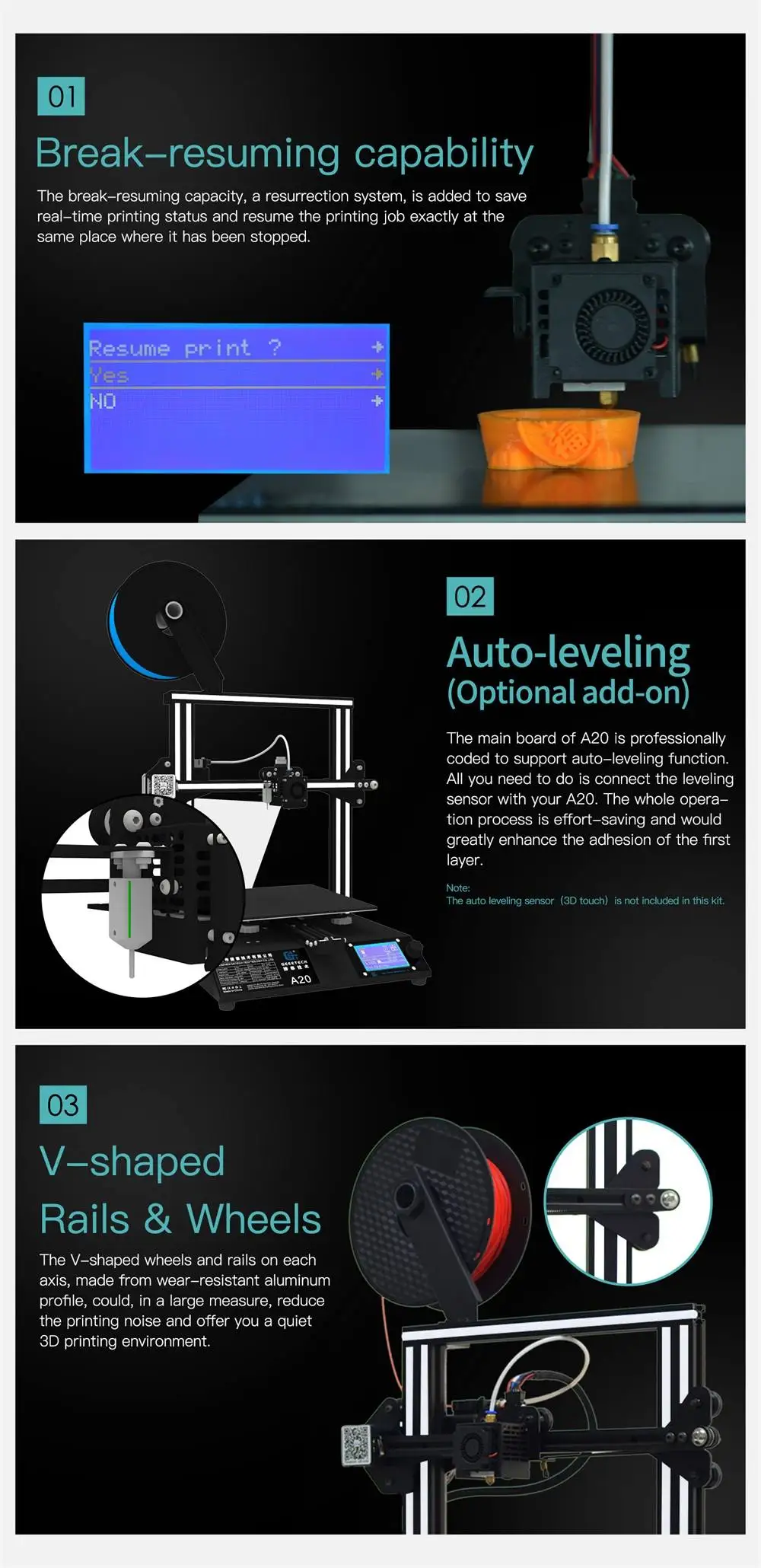 3. Возможность прерывания работы и детектор нити накаливания являются двумя практическими особенностями для сопровождения вашего пути печати