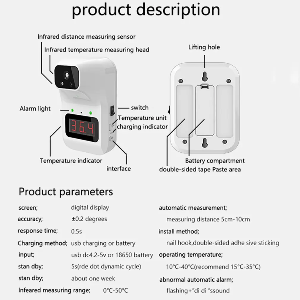 1.Infrared non-contact measurement:you don't need to take it in hands and reduces the risk of cross infection.