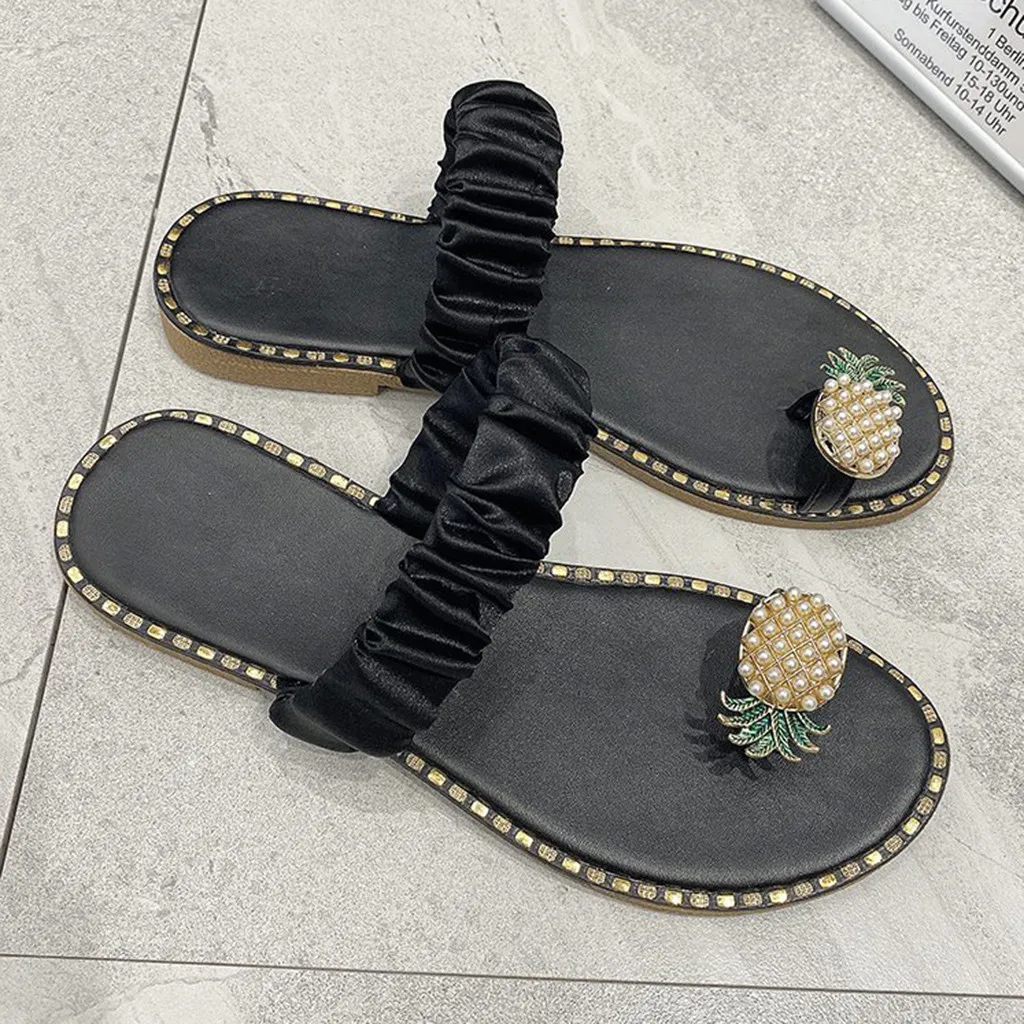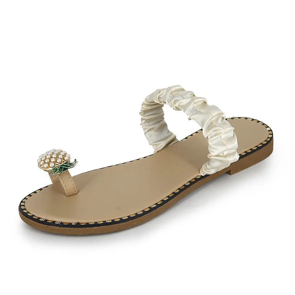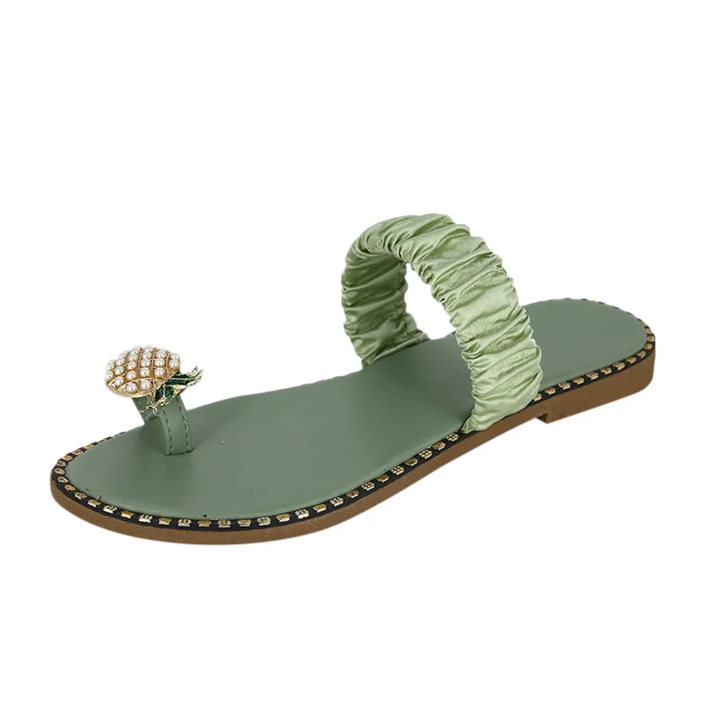 Женские туфли на плоской подошве с жемчугом; Богемные повседневные сандалии-шлепанцы; Пляжная обувь
