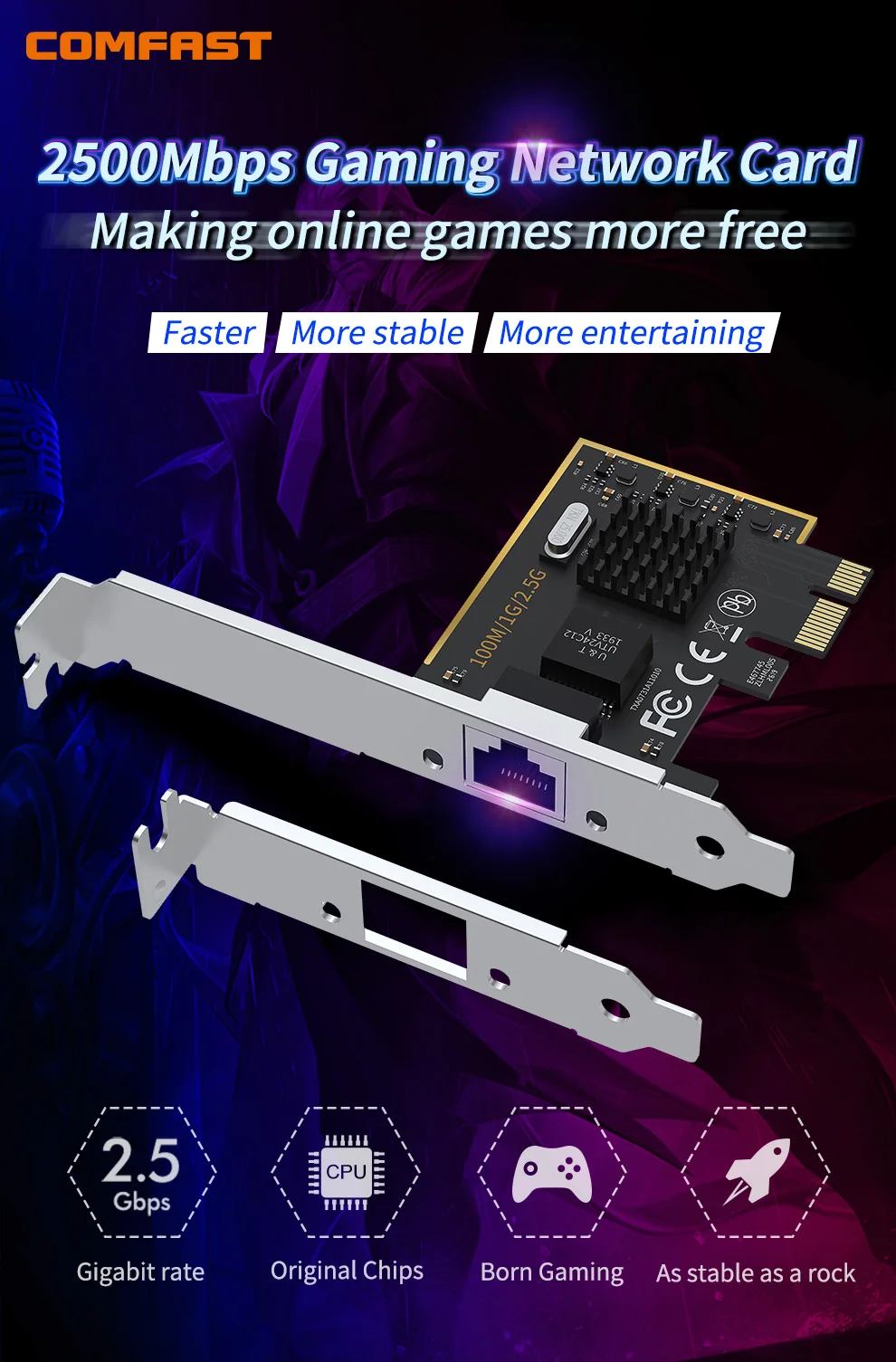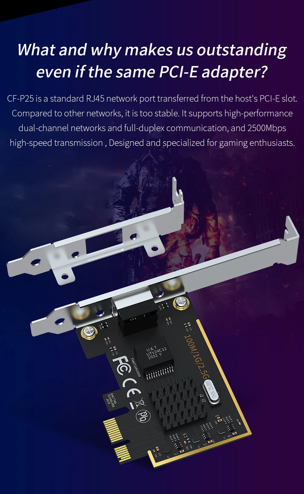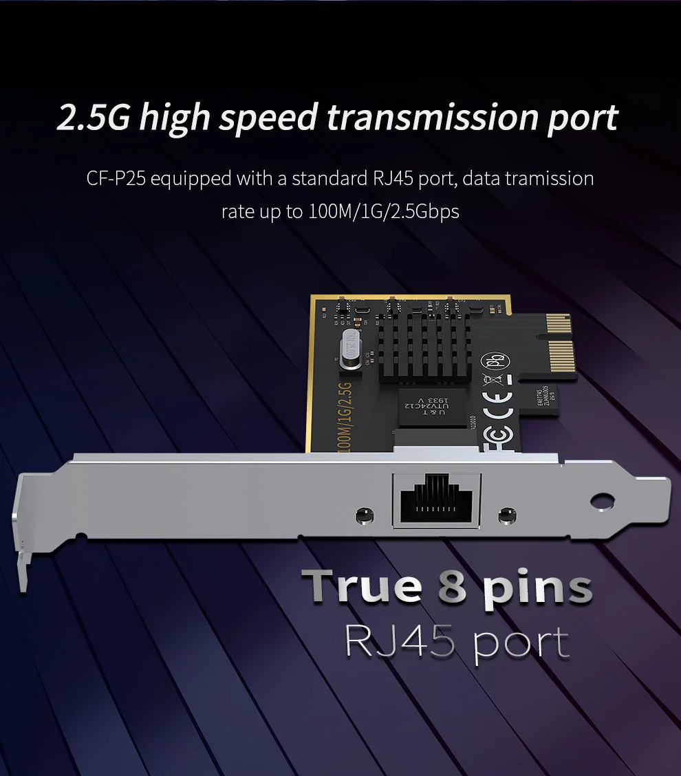 2,5 Гбит/с самый быстрый nextwork что и почему делает нас выдающимися, даже если тот же PCI-E адаптер?CF-P25-это стандартный сетевой порт RJ45, передаваемый от хоста PCI-E slot.com по сравнению с другими сетями, он слишком стабилен, он поддерживает Высокопроизводительные двухканальные сети и полнодуплексную связь, И Высокоскоростная передача данных 2500 Мбит/с, разработанная и специализированная для любителей игр