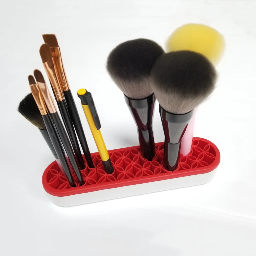 Отверстия разных размеров могут вместить различные косметические инструменты от пинцета до румян кисти. Это может сделать ваш туалетный столик аккуратным и чистым
