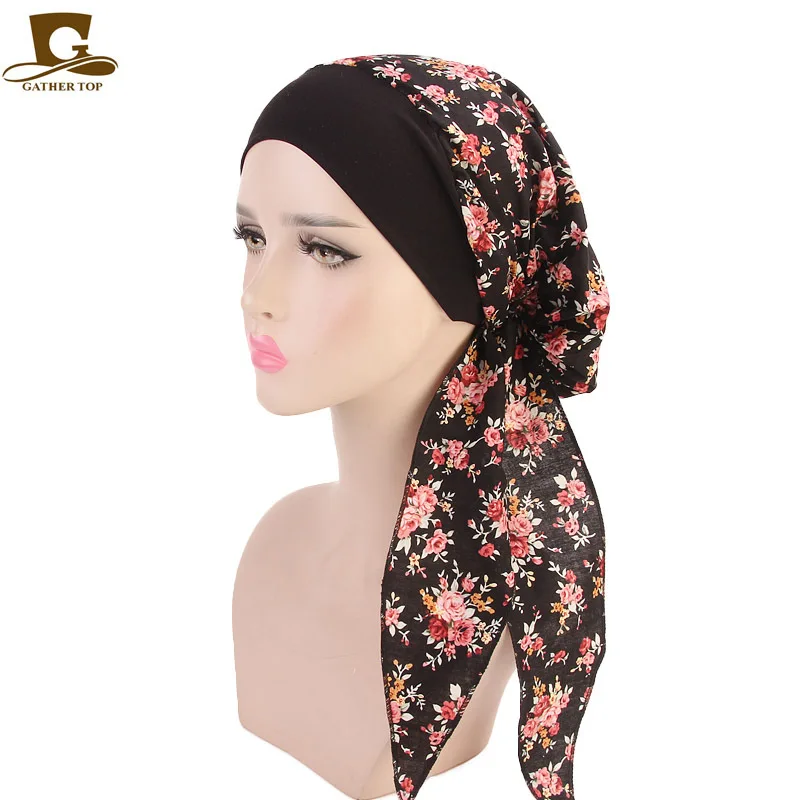 Модный принт тюрбан для женщин повязка для головы хиджаб капот эластичный женский шарф мусульманский Внутренний шапочки под хиджаб мусульманский тюрбан
