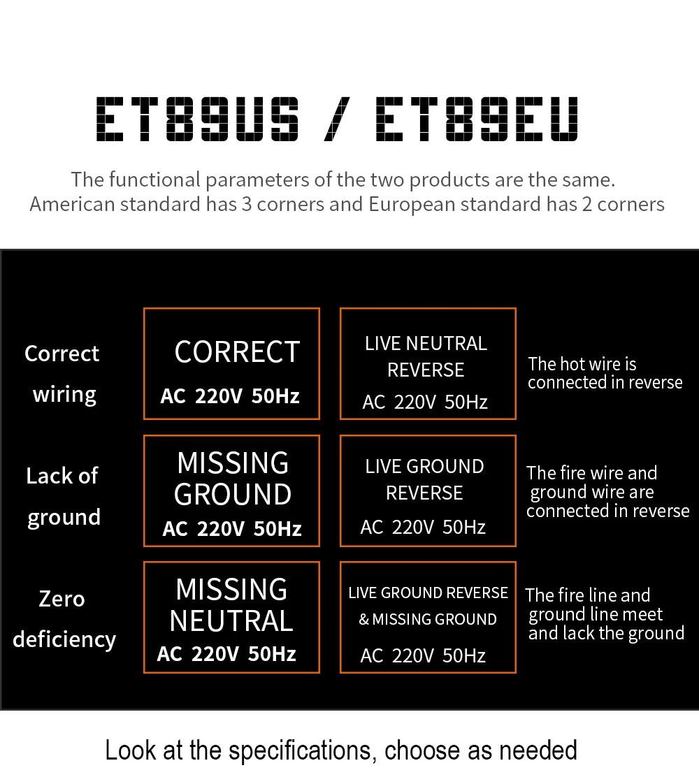 Рабочее напряжение/Диапазон измерения напряжения: 90-250 В/45-65 Гц Весь рабочий ток машины: <3ма (не в состоянии RCD) Точность измерения напряжения: ± (2% + 5) Рабочая температура, 0-40 °C Рабочее сердцебиение: 20% -75% относительной влажности Температура хранения: -10 ~ 50 ° C Влажность хранения: 20-80% относительной влажности Высота: <2000 метров Ток cd:> 30 мА ЖК-дисплей Рабочее напряжение: 220v ± 20V