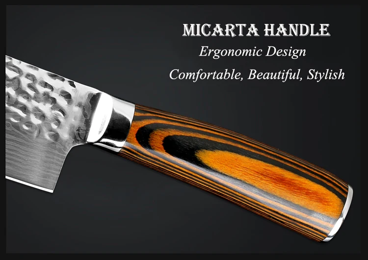 Описание товара Название: XITUO 7-дюймовый нож Santoku, универсальный нож Полная длина: 29,6 см (7 дюймов) Длина лезвия: 17,6 см Ширина лезвия: 5,0 см (в самом широком месте) Толщина лезвия: 2,2 мм Вес нетто: 243 г