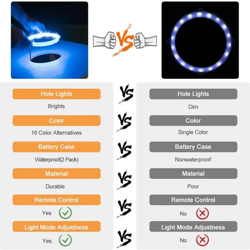 -Ультра яркий и долговечный, поставляется в 1/ 2 супер ярких и долговечных светодиодных Лампах (10 светодиодов на свет) это позволит вам играть в темноте без какой-либо жесткости на глазах и удобно фокусироваться. Высокое качество, прочная ударопрочная рама и водонепроницаемость, не беспокойтесь о поломках. (Плата для кукурузного отверстия в комплект не входит)
