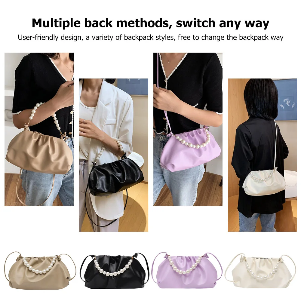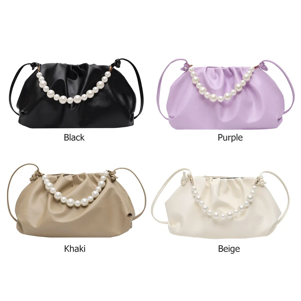 Feature: Cloud design, solid color,pearl chain. PU Leather material, portable durable. Specification: Main material: PU Size: 270*160*80mm/10.63*6.3*3.15in Color: Purple, Black, Beige, Camel Straps: Single Usage: Shoulder bag, Messenger bag, Totes Pattern: Solid color Applicable: Women Occasions: Casual, Daily, Shopping, Travel Note: 1. Due to the different monitor and light effect, the actual color of the item might be slightly different from the color showed on the pictures. Thank you! 2. Please allow 1-3cm measuring deviation due to manual measurement.