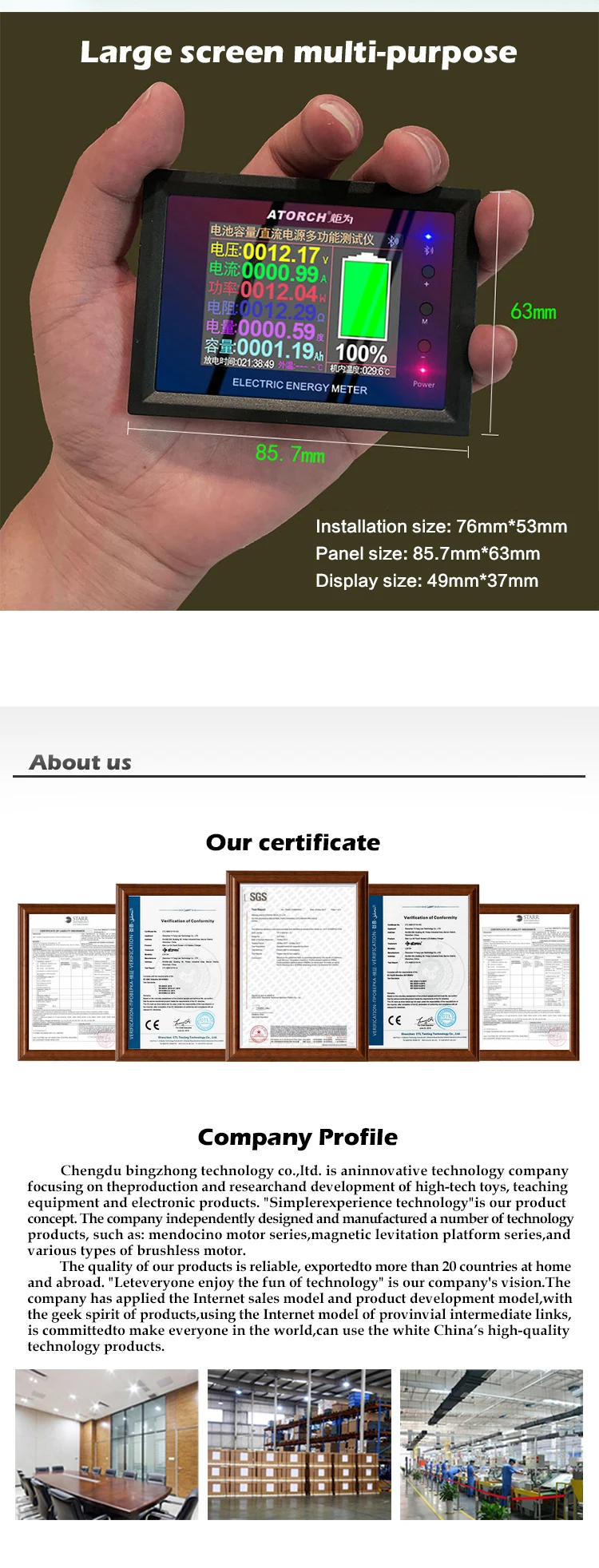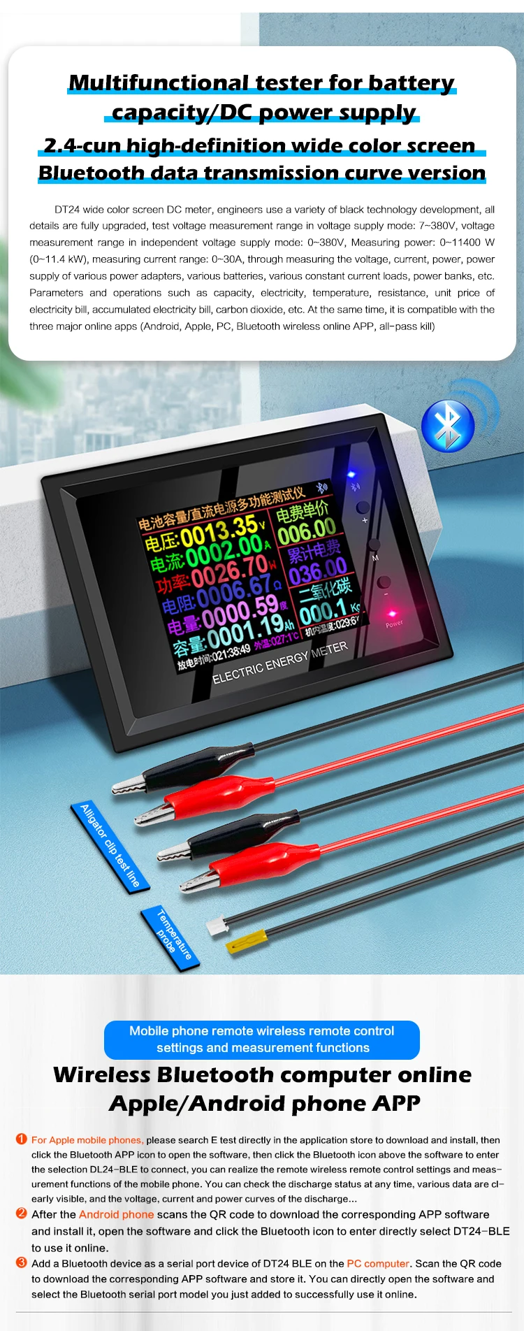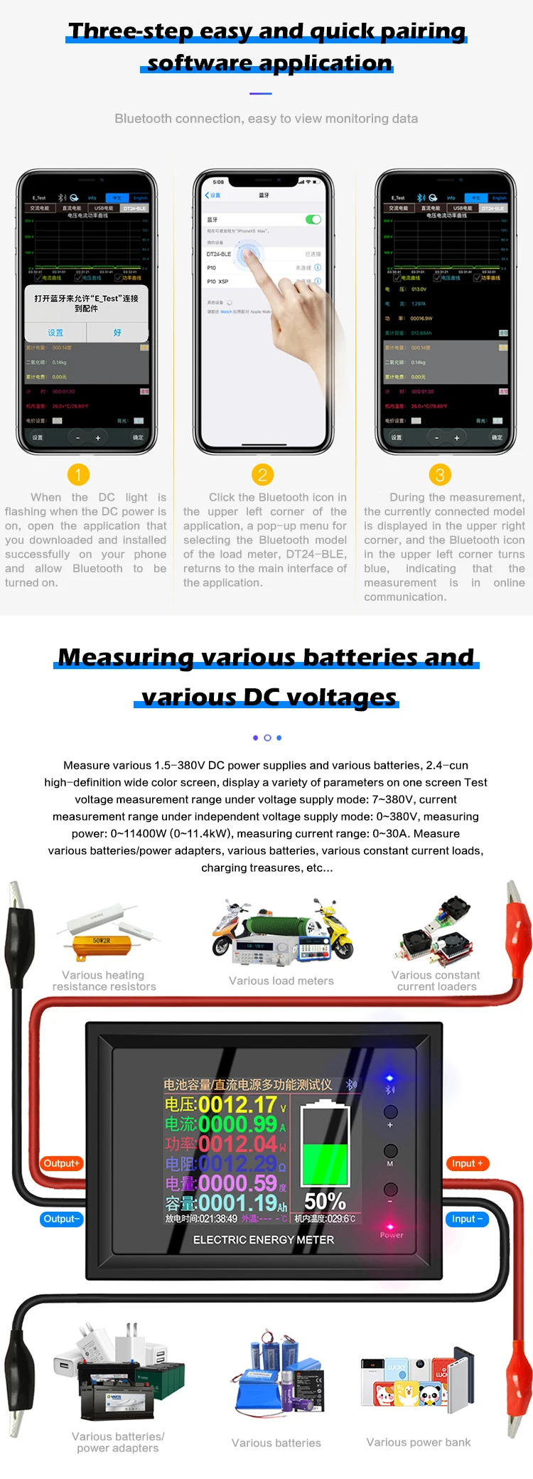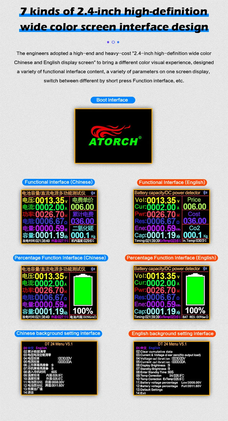Этот продукт используется для обнаружения емкости различных батарей, разрядки различных адаптеров питания и обнаружения напряжения, тока и других параметров различных источников питания постоянного тока