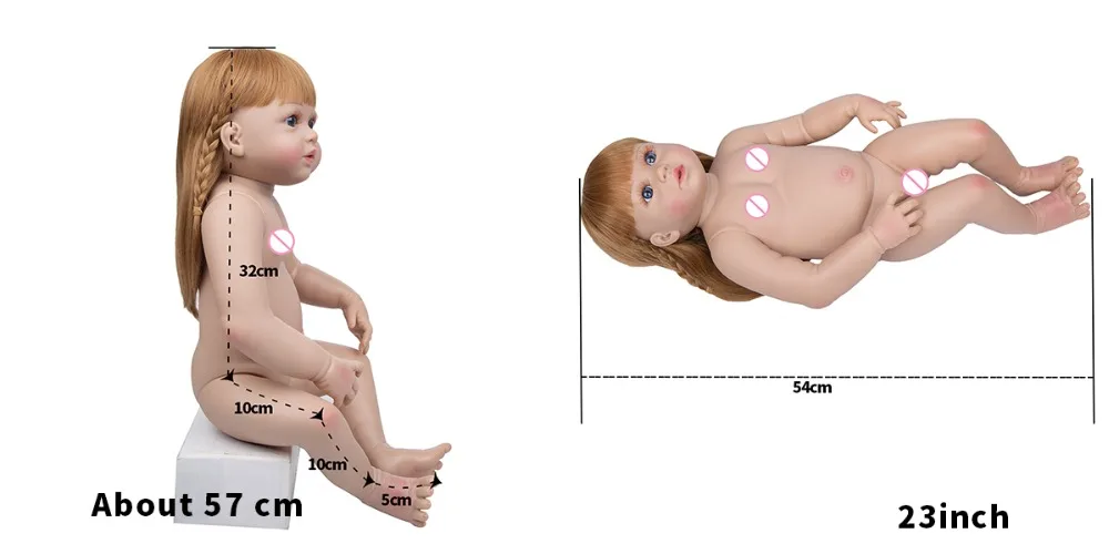 1. Doll sizes:our doll leg is curved, we measure the doll leg as it is in straight state, that is the length from the thigh to the knee plus the length from knee to tiptoes: so there exists 2-3 cm deviation due to different measuring ways.