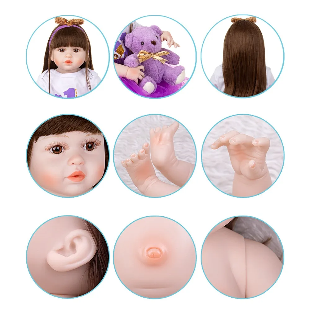 6)Structure:Head and limbs are all made of silicone vinyl. Can put it in water. Imported soft vinyl raw material production, non-toxic;doll limbs can be active,it can sit or lie,can not stand,speak or feed.