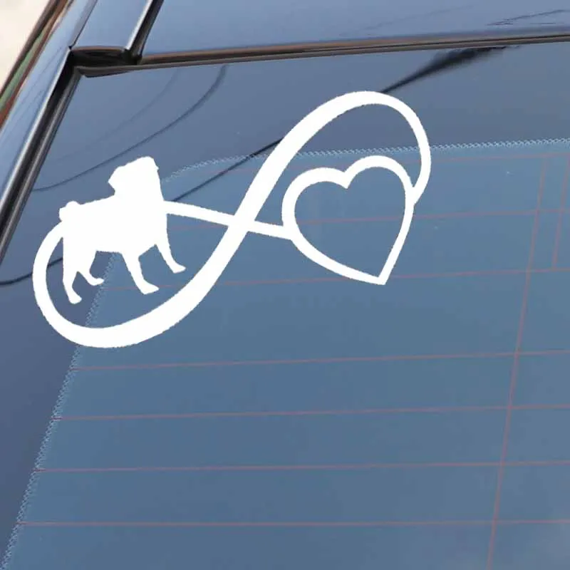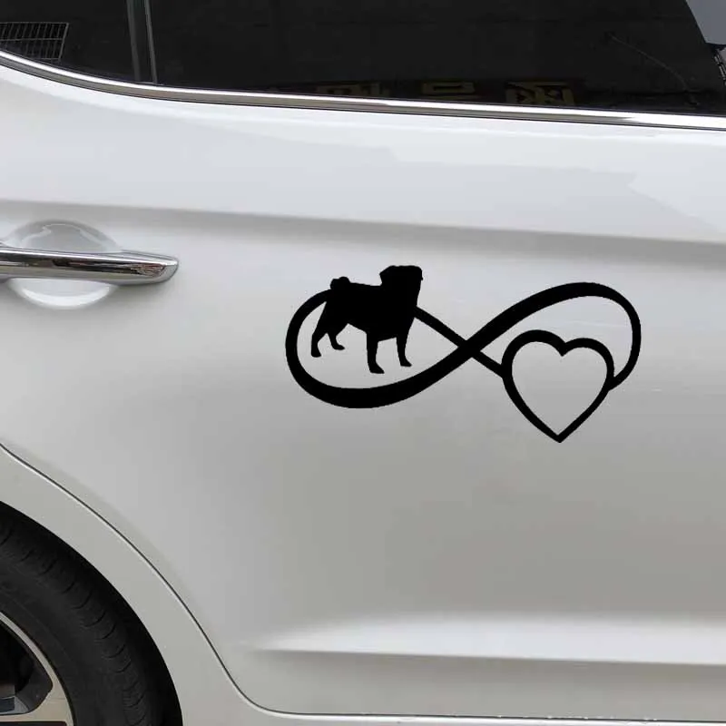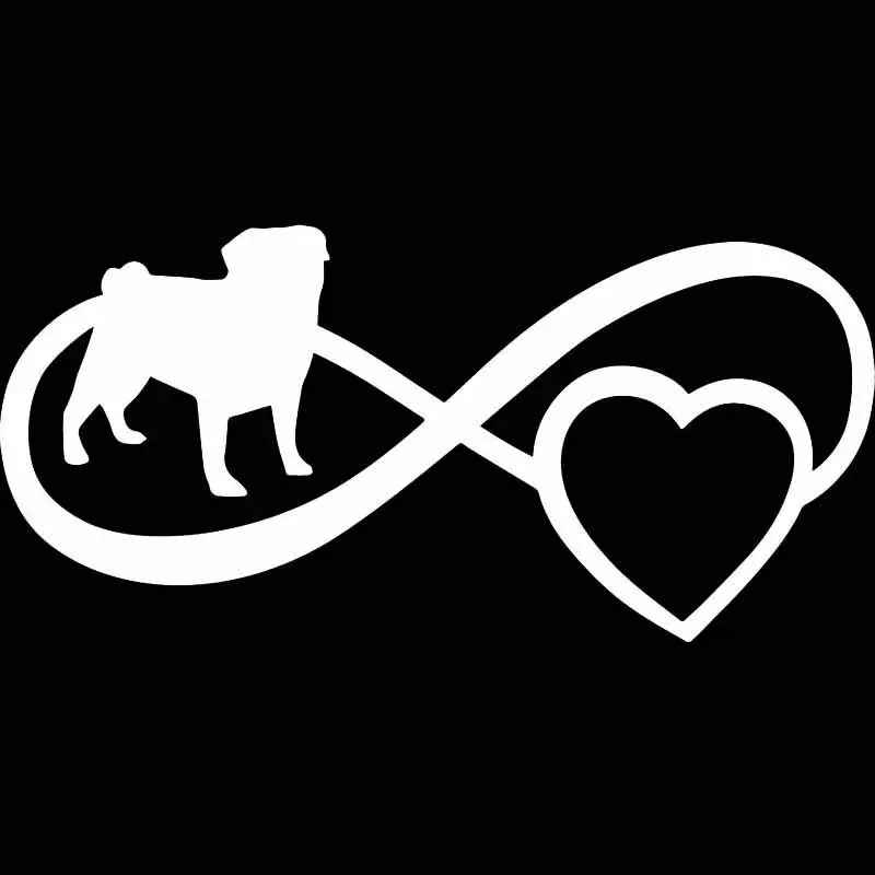 1 xНаклейка для автомобиля Милая Мопс ЛЮБОВЬ бесконечное Сердце Собака ПВХ наклейка на бампер, окно наклейка для автомобиля креативный Водонепроницаемый черный/белый, 17 см * 8 см
